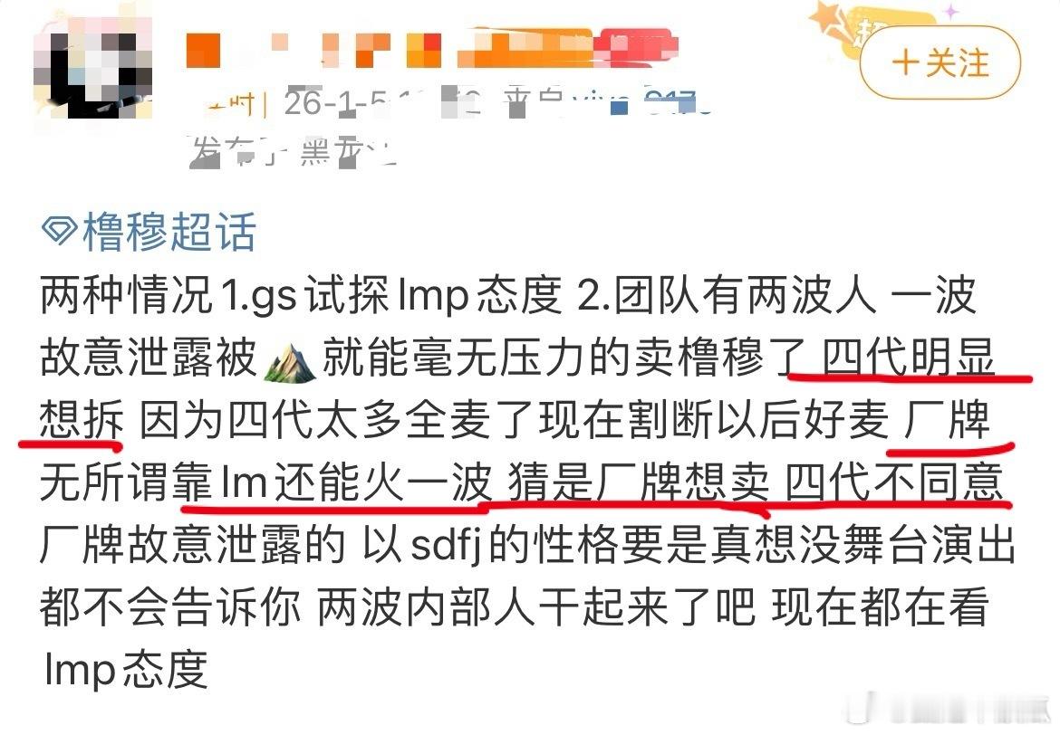 荣耀之战厂牌想卖橹穆,四代不想卖,厂牌让lmp去维权的。