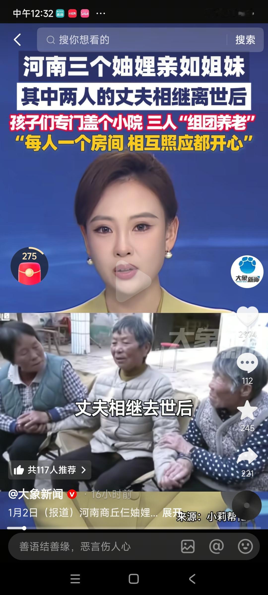 涨知识了!河南有3妯娌火了,原因是3妯娌情况特殊,老大媳妇82岁了,老伴还在,老二媳妇75岁,她老伴没了,老三媳妇70岁,老伴也没了。 最近在河南,有三位妯娌的晚年生活在网上那叫一个火,无数网友看了都直呼:“这也太暖心了吧,简直是神仙日子!”这三位老太太分别是82岁的大嫂、75岁的二嫂,还有70岁的三嫂。 她们仨的岁数加起来足足有227岁了,其中二嫂和三嫂的老伴早就走了,就剩大嫂的老伴还在世,现在这三家老小一合计,干脆把老人们凑到一起,组团养老,硬是把普普通通的日子过成了大家都羡慕的样子。 去年二月份,那时候二嫂的老伴刚走没多久,三嫂的老伴也突然离世了,这前后也就短短37天的时间,两位老人接连失去了依靠。 子女们平时都在外地忙活,这回赶回村里探望的时候才发现,独自守着空房子的老母亲,那日子过得叫一个凄凉,吃饭也就是随便对付两口,屋里冷冷清清没点人气,眼神里全是那种说不出的落寞。 而大嫂虽然有大哥陪着,毕竟年纪大了,腿脚也不利索,平时也需要人搭把手照应着。 看着老人们这处境,三家一共13个堂兄妹聚在一起商量对策,有人说送养老院吧,老人们一听就连连摆手,说:“那地方哪有家里自在啊,不去不去。” 有人说那雇个保姆吧,可农村这地方,靠谱的保姆不好找不说,那费用也不低啊,最后有人提了个主意:把老三家的房子好好翻新一下,让这三位妯娌加上大哥全都住到一块去,大家互相有个照应,这个主意一说出口,不光老人们高兴得举双手赞成,就连子女们也都觉得特别放心。 说干就干,很快九位女婿就从全国各地赶回来帮忙了,有负责运建材的,有负责砌墙的,还有负责装水电的,大家齐心协力,没用几个月就把那破旧的老屋改成了敞亮温馨的小院。 屋里特意留了三间朝阳的大卧室,每位老人一人一间,保证大家都有自己的私密空间,厨房和客厅那是共用的,方便大家一起吃饭聊天。 院子里还专门留了一块空地,让她们种点花草蔬菜,既能锻炼身体又能吃上新鲜菜,为了老人的安全,台阶上加了防滑条,卫生间里也装了扶手,那真是处处都透着贴心和周到。 搬进去之后,这三位妯娌那是自发地形成了“互助小组”,把日子过得井井有条,最年轻的三嫂手脚最麻利,主动就把买菜做饭这些力气活儿给包揽了,二嫂心思细致,负责收拾屋子、缝补个衣物啥的,大嫂年纪最大,阅历也最丰富,家里要是有点啥大事小情的,大家都愿意听她拿主意。 每天清晨六点多,小院就开始热闹起来了:三嫂忙着烧开水浇菜,二嫂在厨房切咸菜准备早饭,大嫂就坐在石凳上剥剥蒜,嘴里还念叨着:“你们慢点啊,别着急,小心别摔着了。”这画面,真是既温馨又治愈。 她们这感情啊,早就超越了普通的妯娌关系,五十年都没红过一次脸,想当年年轻的时候,她们就一起下地干活、一起操持家务、一起带孩子。 谁家有点好吃的,那从来都是分成三份大家一起吃,大嫂帮三嫂带过孩子,二嫂替大嫂干过农活,现在住到一起了,那更是亲如姐妹。 子女们也没闲着,谁有空谁就回来看望老人,离得近的经常回家做饭打扫卫生,远在新疆的表姐会定期寄来整箱整箱的香梨,每位老人一份,家里的压水井坏了,侄女婿二话不说驱车20公里赶回来修,天一凉,闺女们就提前买好棉马甲,每位老人一人一件。 这13个堂兄妹不分彼此,把四位老人当成共同的父母来孝顺,老人们也把这些孩子都当成自己的亲骨肉一样疼爱。 大哥经常说:“这个家不能散啊,有她们仨做伴,我这心里头也踏实多了。”三位妯娌也总是念叨:“啥叫幸福啊?幸福不是住多大的豪宅、开多好的车,而是能跟最亲的人在一起,心连着心过日子。” 她们这日常生活的视频被发到网上后,很快就火遍了全网,网友们纷纷留言说:“这才是养老的终极形态啊,有伴儿就不孤单!”“虽然没有血缘关系却胜似亲人,这样的妯娌关系太难得了!”“子女们也太给力了,这才是真正的大家庭温暖啊!” 现在农村很多老人都是空巢独居,子女在外打拼分身乏术,养老确实成了个大难题。 而这三位妯娌的“组团养老”模式,既保留了家庭的那份温情,又解决了独居带来的风险,还大大减轻了子女的负担。 其实晚年幸福不幸福,不在于你住得多好、多有钱,而在于你身边有没有人陪伴、遇事有没有人照应。 这三位妯娌用五十年的相处和相互扶持告诉我们一个道理:最好的晚年生活,不过就是有人陪你吃吃饭、听你说说话,在那些平凡的日子里彼此温暖、相互依靠罢了。 对此你怎么看? 信源:大象新闻