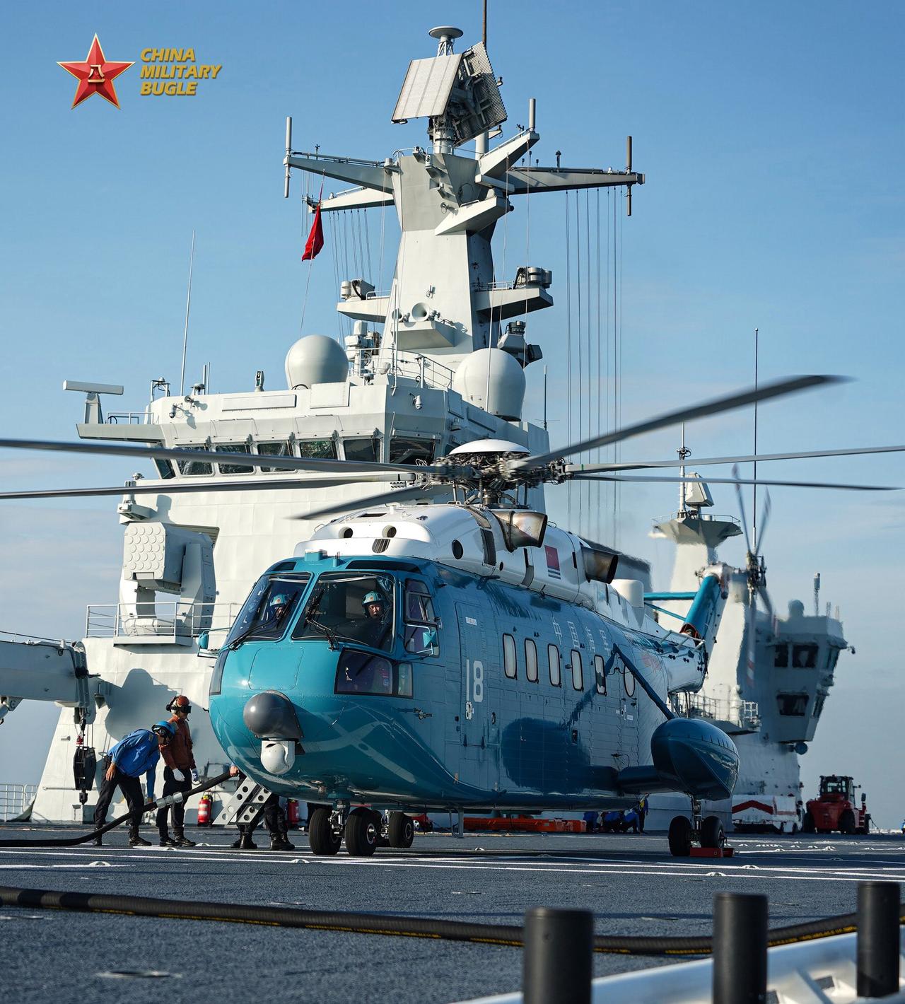 075型两栖攻击舰训练美图。 从图上看,直-18真是大
