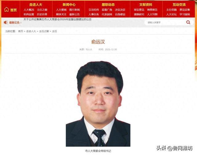 近日,查询黄石市人大官网显示,俞远汉已经任黄石市人大常委会党组书记