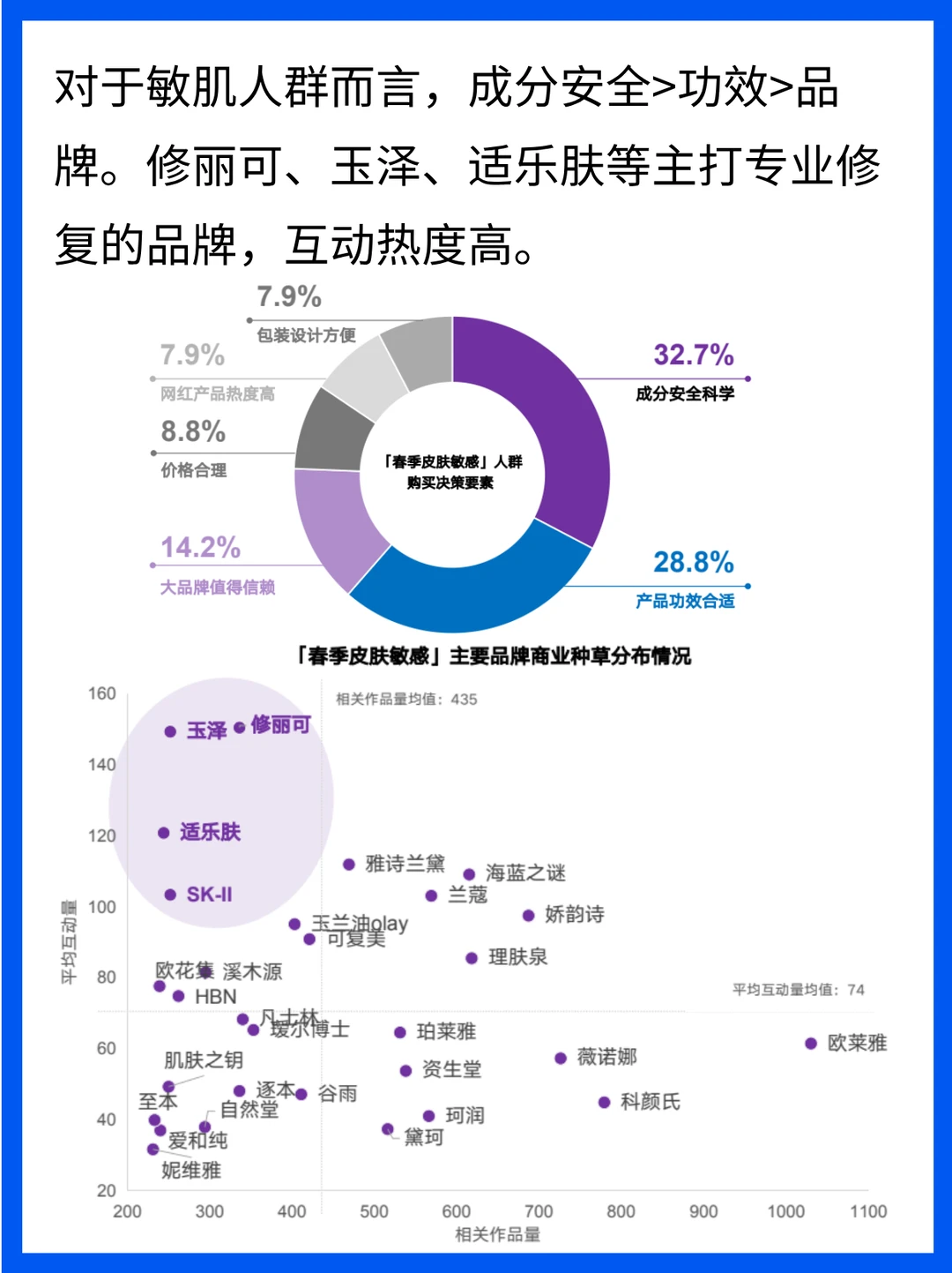 国际品牌通过场景化测评和专业背书强化品牌认知,国货品牌则以春敏急救、换季修复等经验分享实现高效种草。