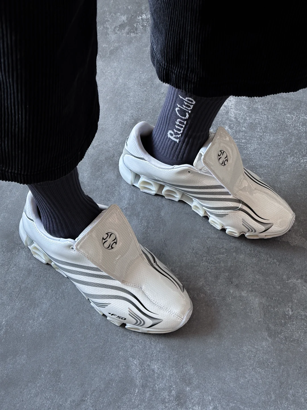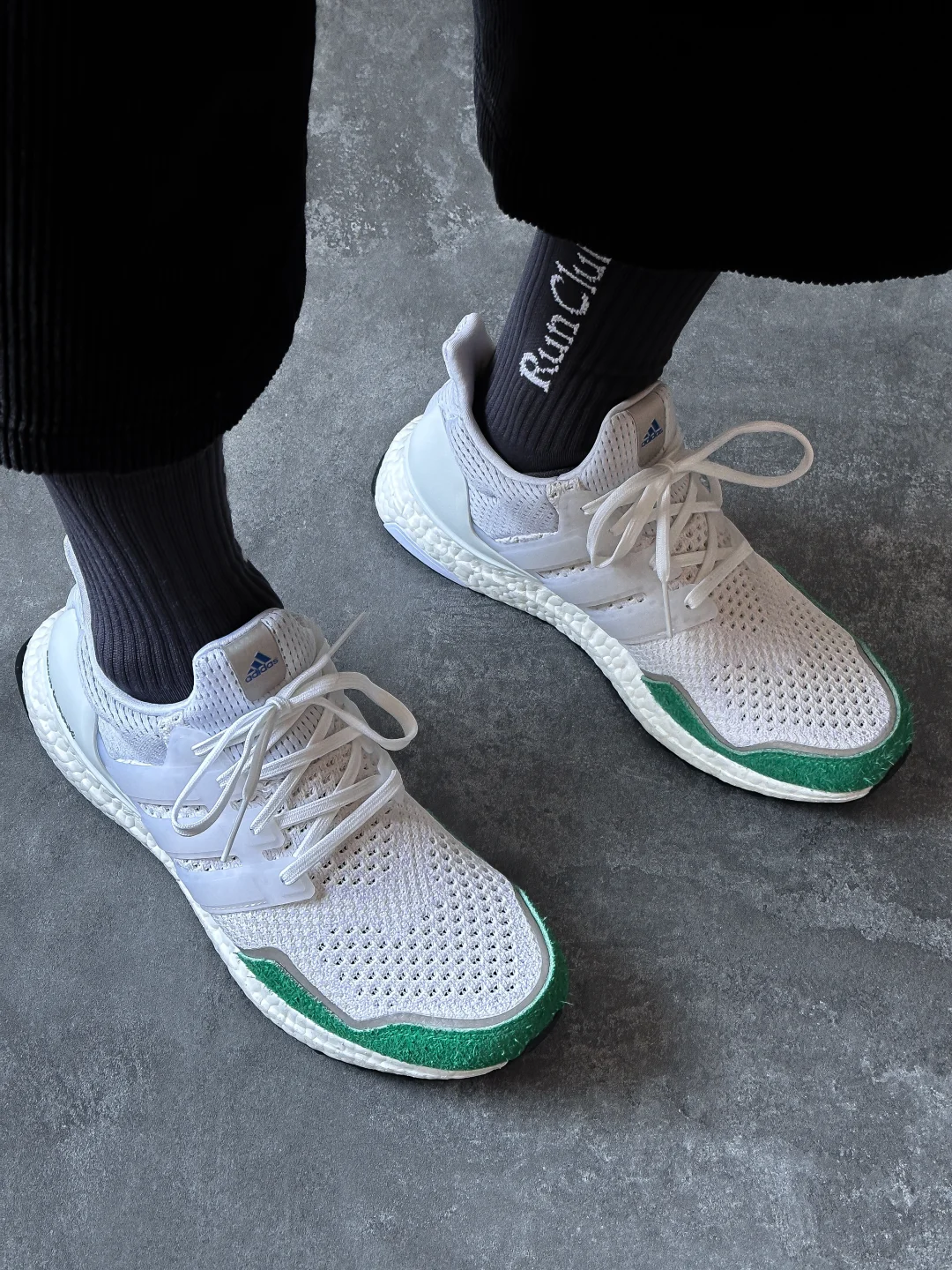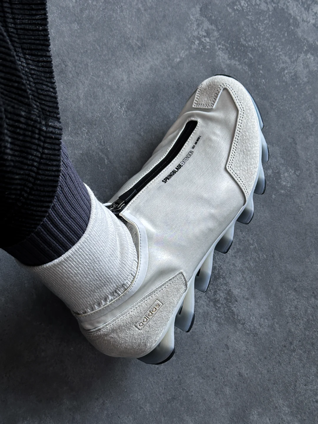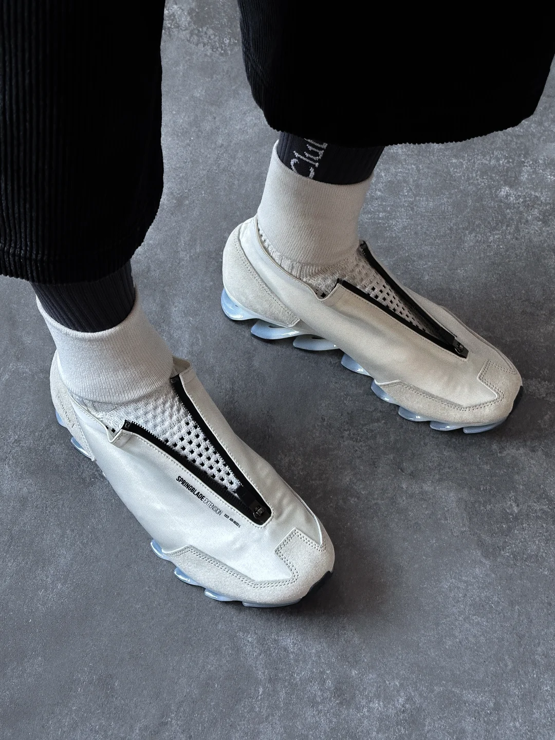 最近二十多年里,adidas带来过众多缓震技术。 不过要论让人印象深刻,可能还要算这三个:Megaride(曾经的a3)、Springblade刀锋、Boost。 这三个代表性的缓震技术外形都很有特点: -这双Megaride来自于Slam Jam与adidas的联名F50 Tunit,把F50的足球鞋基因🧬嫁接在科技感十足的Mega大底上,有了全新的生命力。 -这双Ultraboost也是被Jerry Lorenzo频繁上脚的一双,只是把纯白UB的鞋头变成了绿色🎾翻毛,简单但是特色十足。 -这款刀锋则是我认为最具时尚气质的一款,采用了双层鞋面+袜套的设计,整双鞋利落干脆,鞋面的拉链也为整双鞋增加了恰到好处的机能元素🦾。