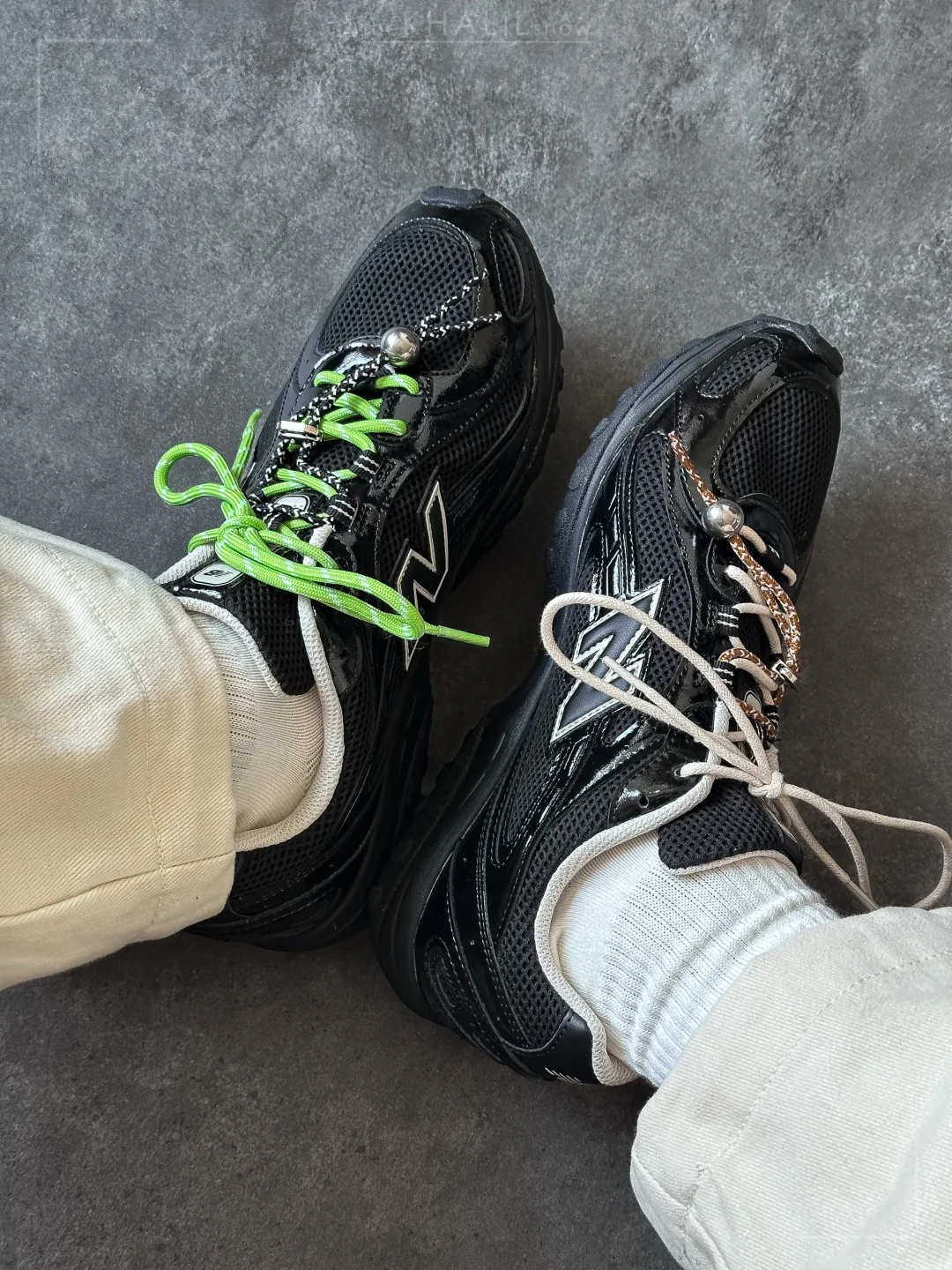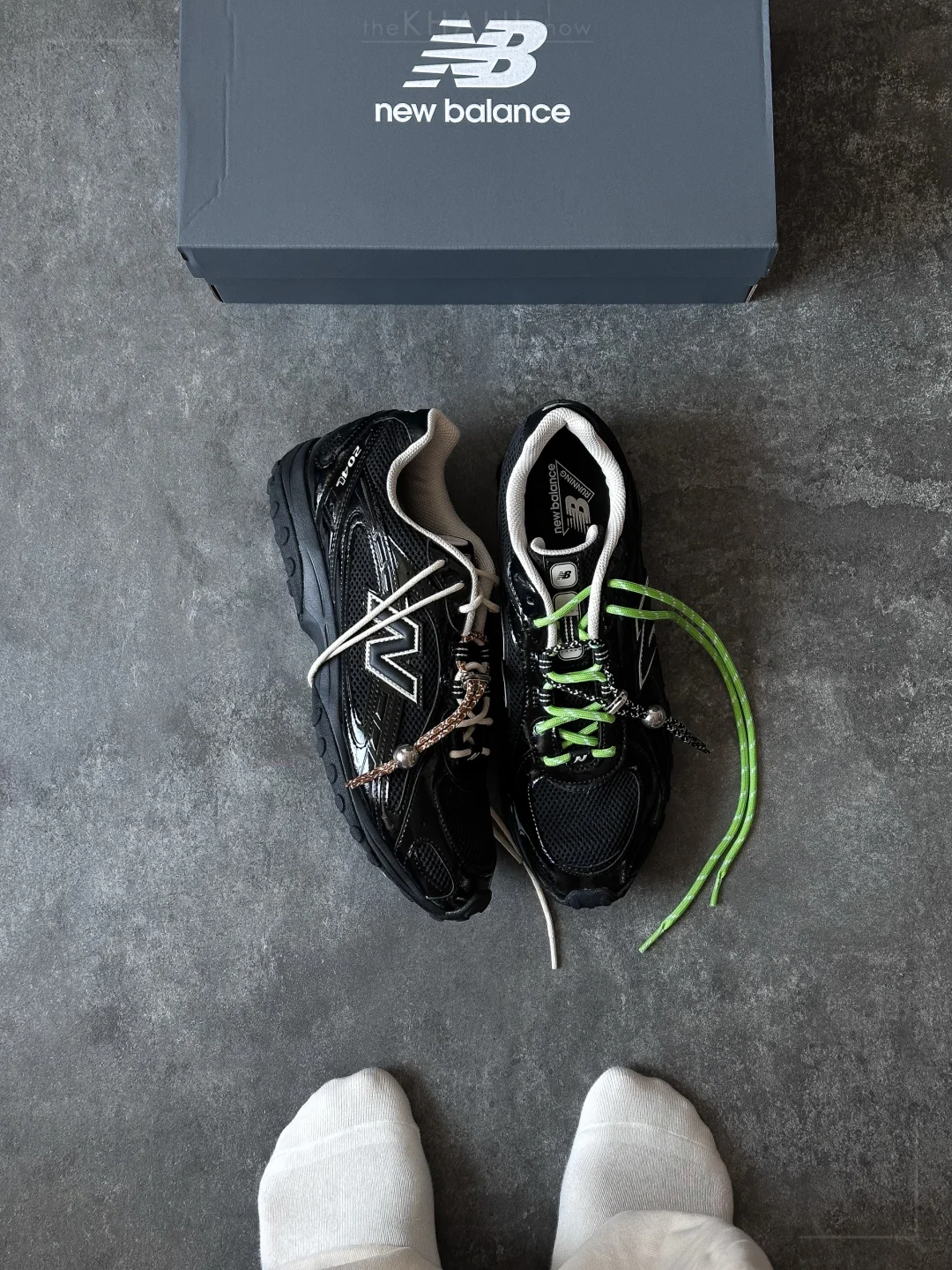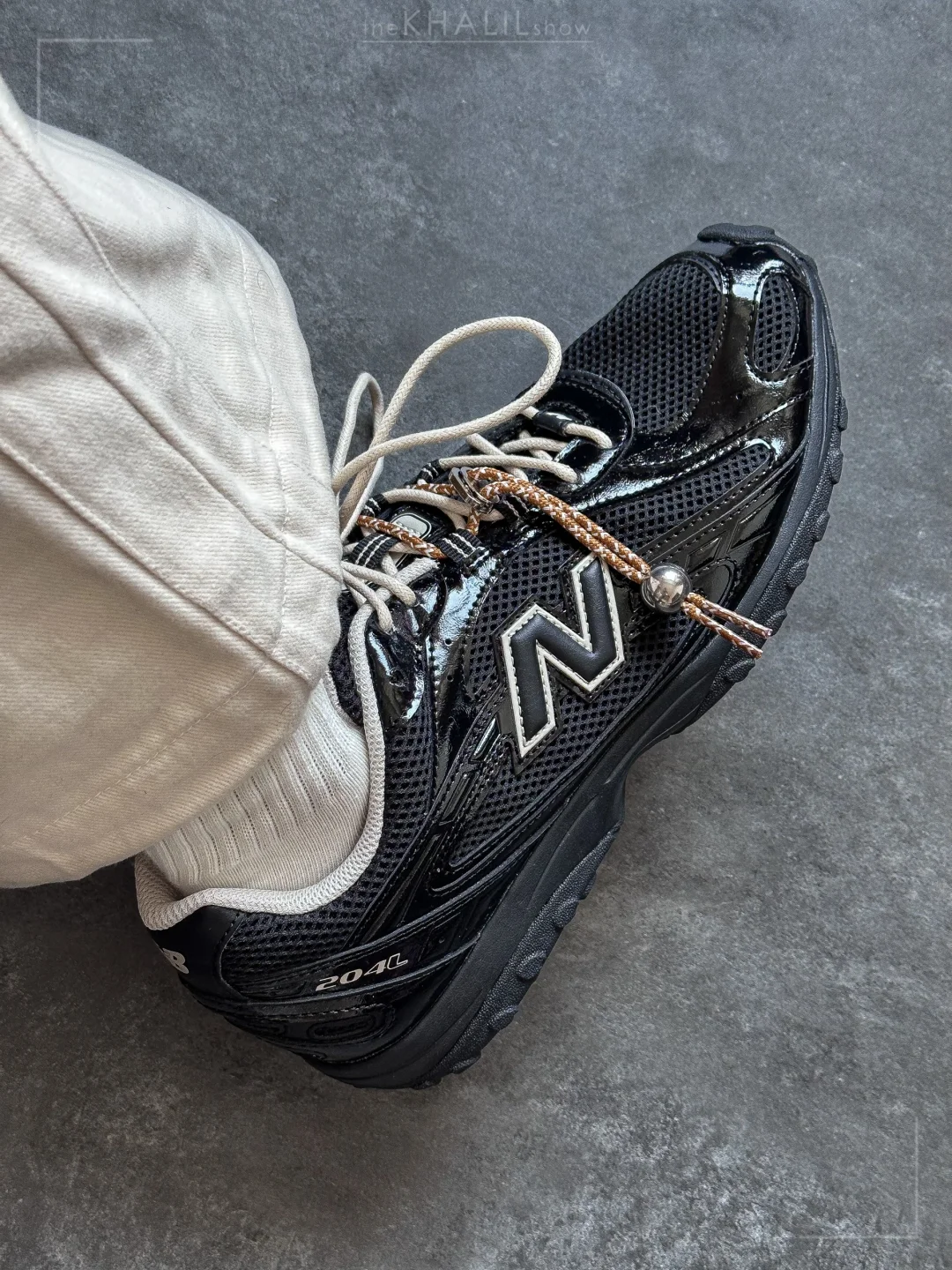 前面几双New Balance 204L虽然也很不错,但一直没激起我的冲动,直到看到这个新配色,确实是眼前一亮的黑。 - 首先黑色和米白色的搭配就很经典,然后这个配色黑色鞋面上不仅实用了织物,更是大面积通过漆皮增加了光泽感和鞋面的变化。除了内衬的白色、N字标志也仅仅做了白色轮廓钩边,搭配很和谐。 - 原鞋搭配的是黑色鞋带、我自己换了多色鞋带,感觉搭配起来也很好看。