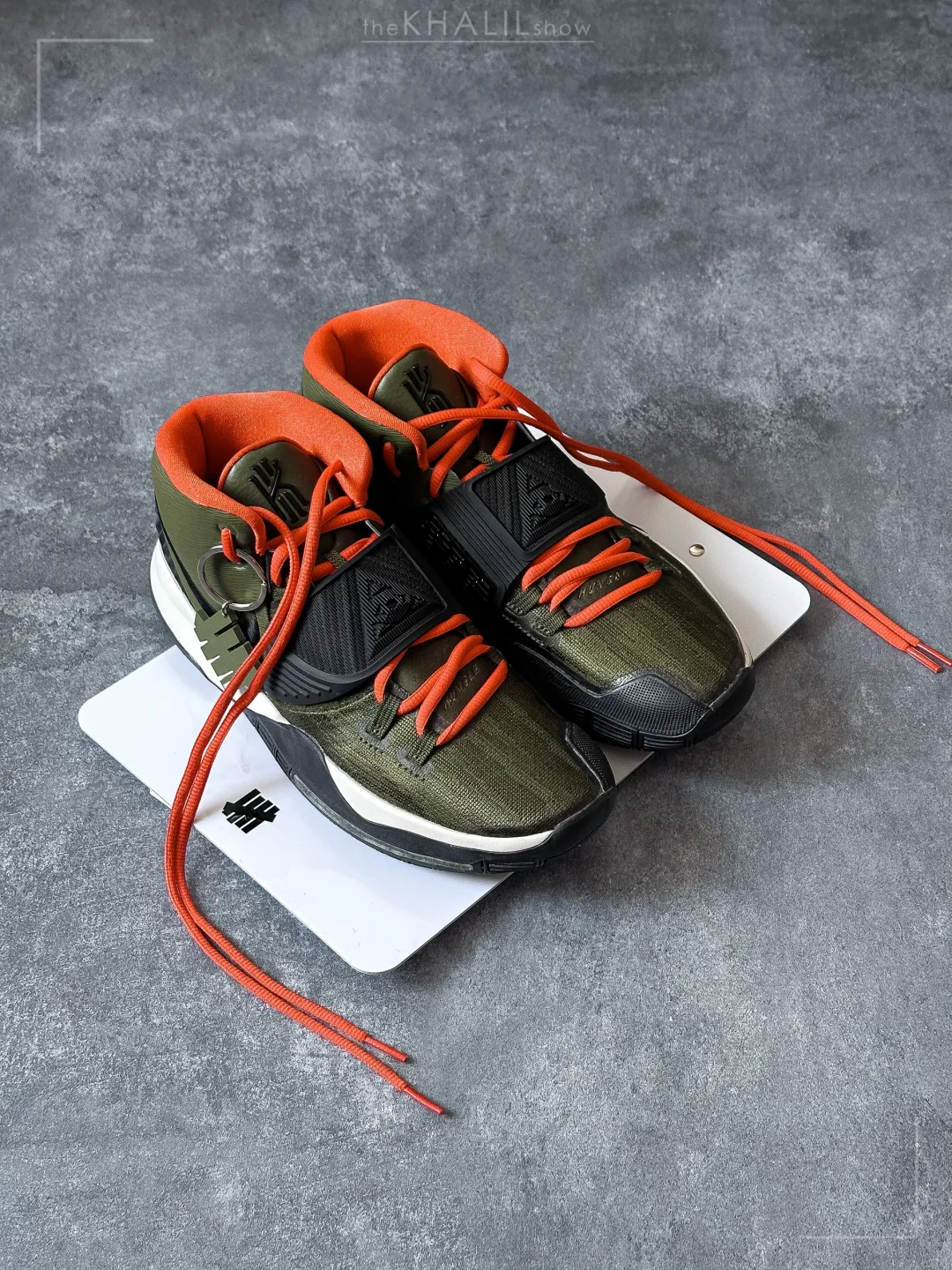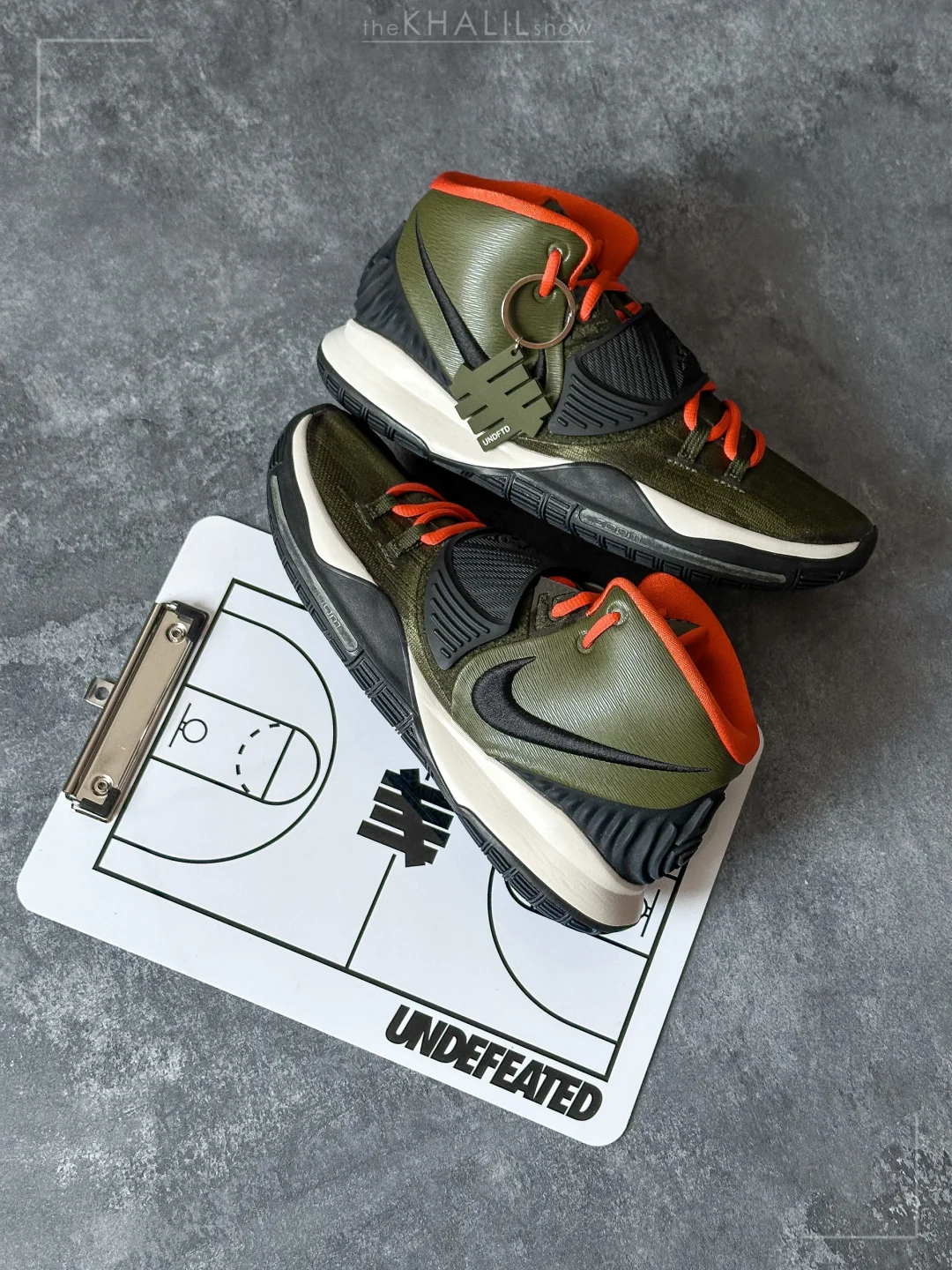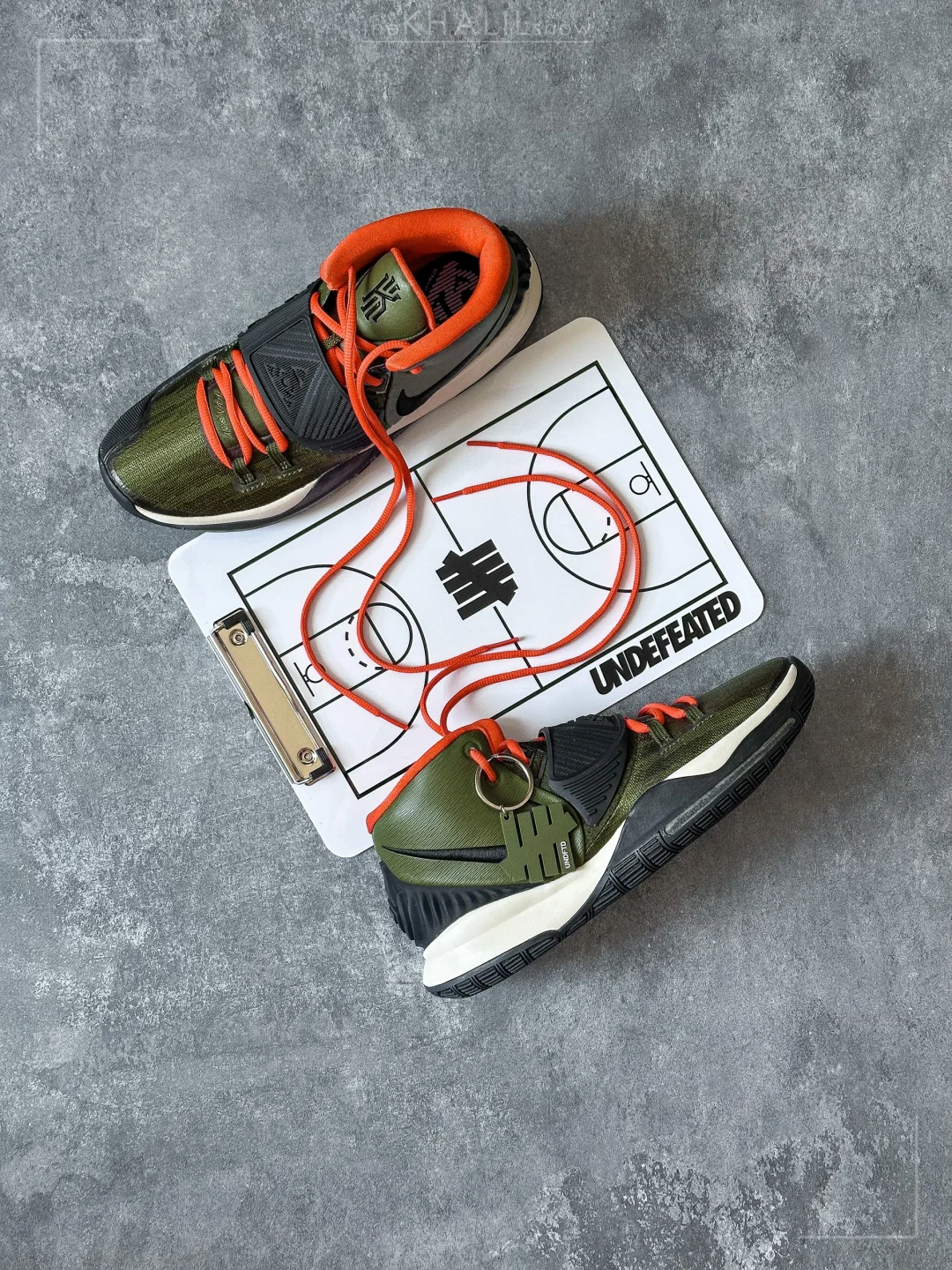 都知道我喜欢玩nike by you的定制,之前也做了一系列的欧文配色,其中欧文6做的配色应该是最多的了。今天分享一双以五道杠Undefeated经典配色为灵感的配色方案。 鞋面选择了军绿色和黑色的组合,鞋带和内衬用了标志性的橙色点缀,鞋的中底采用了米白色。这个配色的实战篮球鞋在球场上还是挺少见吧😄