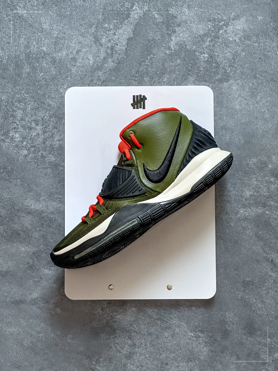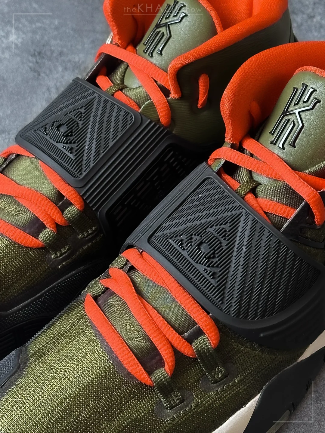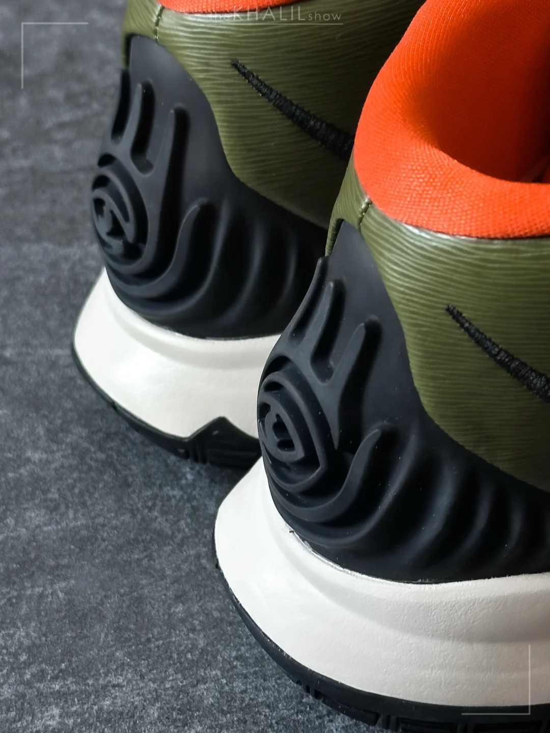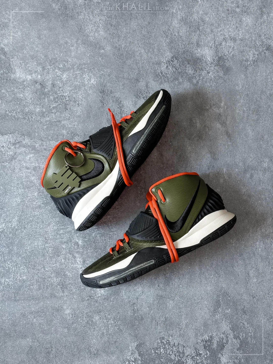 都知道我喜欢玩nike by you的定制,之前也做了一系列的欧文配色,其中欧文6做的配色应该是最多的了。今天分享一双以五道杠Undefeated经典配色为灵感的配色方案。 鞋面选择了军绿色和黑色的组合,鞋带和内衬用了标志性的橙色点缀,鞋的中底采用了米白色。这个配色的实战篮球鞋在球场上还是挺少见吧😄