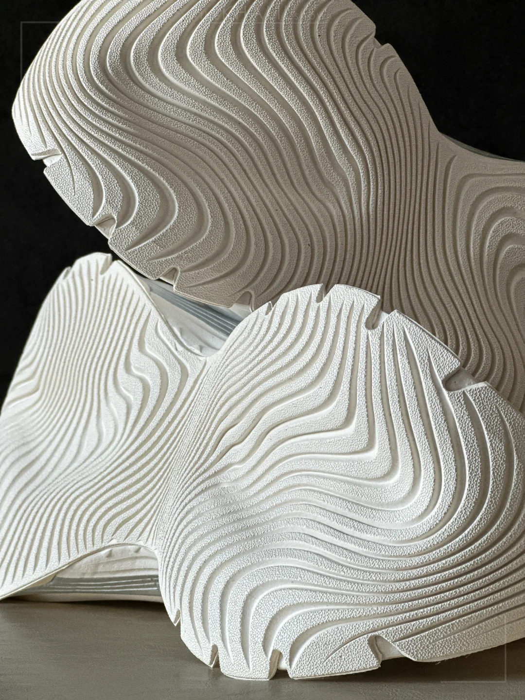 -🌟鞋后跟弧度与外底一体化融合、塑造了如建筑一般的空间流动感。