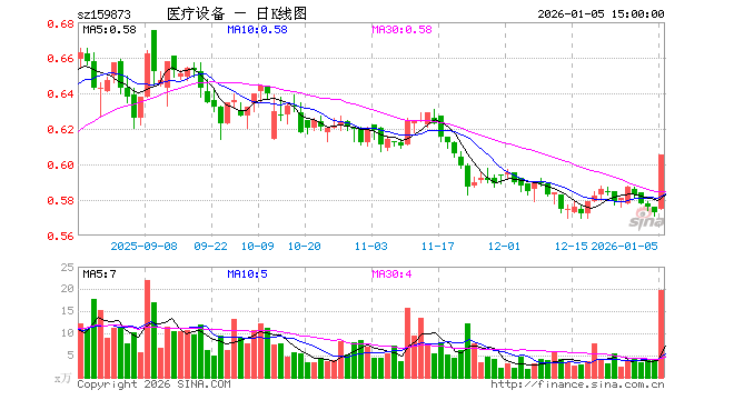 1月5日,医疗设备ETF(159873)涨5.58%,成交额1178.99万元。当日份额减少700.00万份,最新份额为1.84亿份,近20个交易日份额减少500.00万份。最新资产净值计算值为1.11亿元。