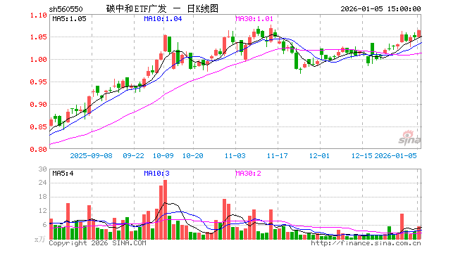 1月5日,碳中和ETF广发(560550)涨1.43%,成交额571.92万元。当日份额减少200.00万份,最新份额为2.36亿份,近20个交易日份额减少3000.00万份。最新资产净值计算值为2.51亿元。