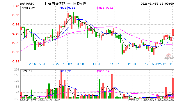 1月5日,上海国企ETF(510810)涨1.71%,成交额1.31亿元。当日份额减少1.30亿份,最新份额为71.12亿份,近20个交易日份额减少2.37亿份。最新资产净值计算值为67.52亿元。
