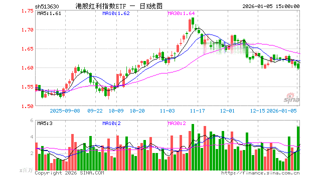 1月5日,港股红利指数ETF(513630)跌0.50%,成交额8.39亿元。当日份额增加1000.00万份,最新份额为103.35亿份,近20个交易日份额减少6100.00万份。最新资产净值计算值为166.89亿元。