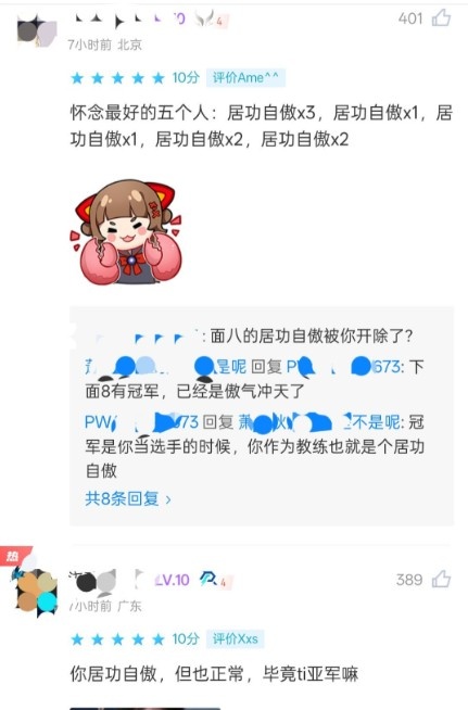 XG老板杨一清的言论“居功自傲”被网友讨论为不适,在XG战胜VG的战报评论区中,被“居功自傲”刷屏。