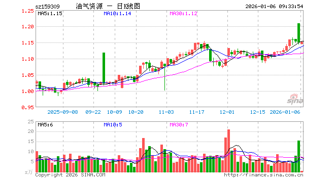1月6日,油气ETF汇添富(159309)开盘跌0.43%,报1.145元。油气ETF汇添富(159309)重仓股方面,杰瑞股份开盘涨3.12%,中国海油涨0.00%,中国石油跌0.20%,中国石化涨0.16%,招商轮船跌0.67%,广汇能源跌0.20%,中远海能跌0.43%,招商南油涨0.00%,海油工程涨0.18%,洲际油气跌0.99%。