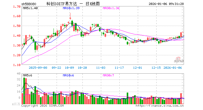 1月6日,科创50ETF易方达(588080)开盘涨0.07%,报1.431元。科创50ETF易方达(588080)重仓股方面,中芯国际开盘跌0.73%,海光信息跌0.80%,寒武纪跌0.72%,澜起科技涨0.98%,中微公司涨0.86%,联影医疗涨0.00%,金山办公跌0.41%,芯原股份跌0.51%,石头科技涨0.06%,传音控股跌0.28%。