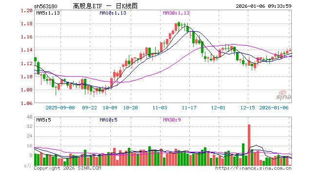 1月6日,高股息ETF(563180)开盘涨0.00%,报1.138元。高股息ETF(563180)重仓股方面,格力电器开盘涨0.02%,中国神华涨0.10%,中国石油跌0.20%,中远海控涨0.13%,中国石化涨0.16%,陕西煤业涨0.42%,大秦铁路涨0.00%,宝钢股份涨0.00%,海螺水泥跌0.05%,沪农商行涨0.00%。