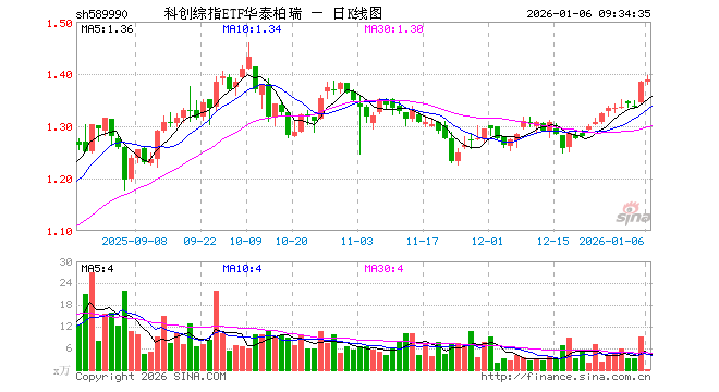 科创综指ETF华泰柏瑞(589990)业绩比较基准为上证科创板综合指数收益率,管理人为华泰柏瑞基金管理有限公司,基金经理为谭弘翔,成立(2025-02-26)以来回报为38.82%,近一个月回报为7.84%。