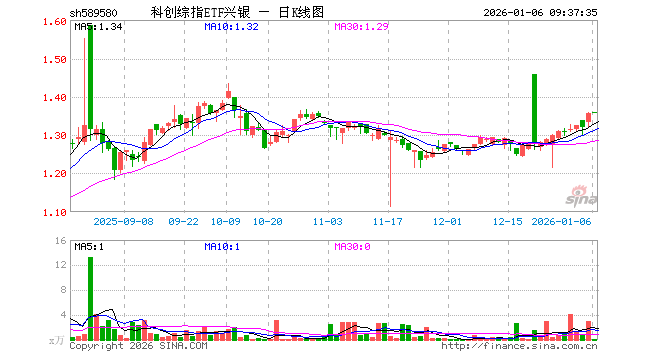 科创综指ETF兴银(589580)业绩比较基准为上证科创板综合价格指数收益率,管理人为兴银基金管理有限责任公司,基金经理为林学晨,成立(2025-05-27)以来回报为35.71%,近一个月回报为6.77%。