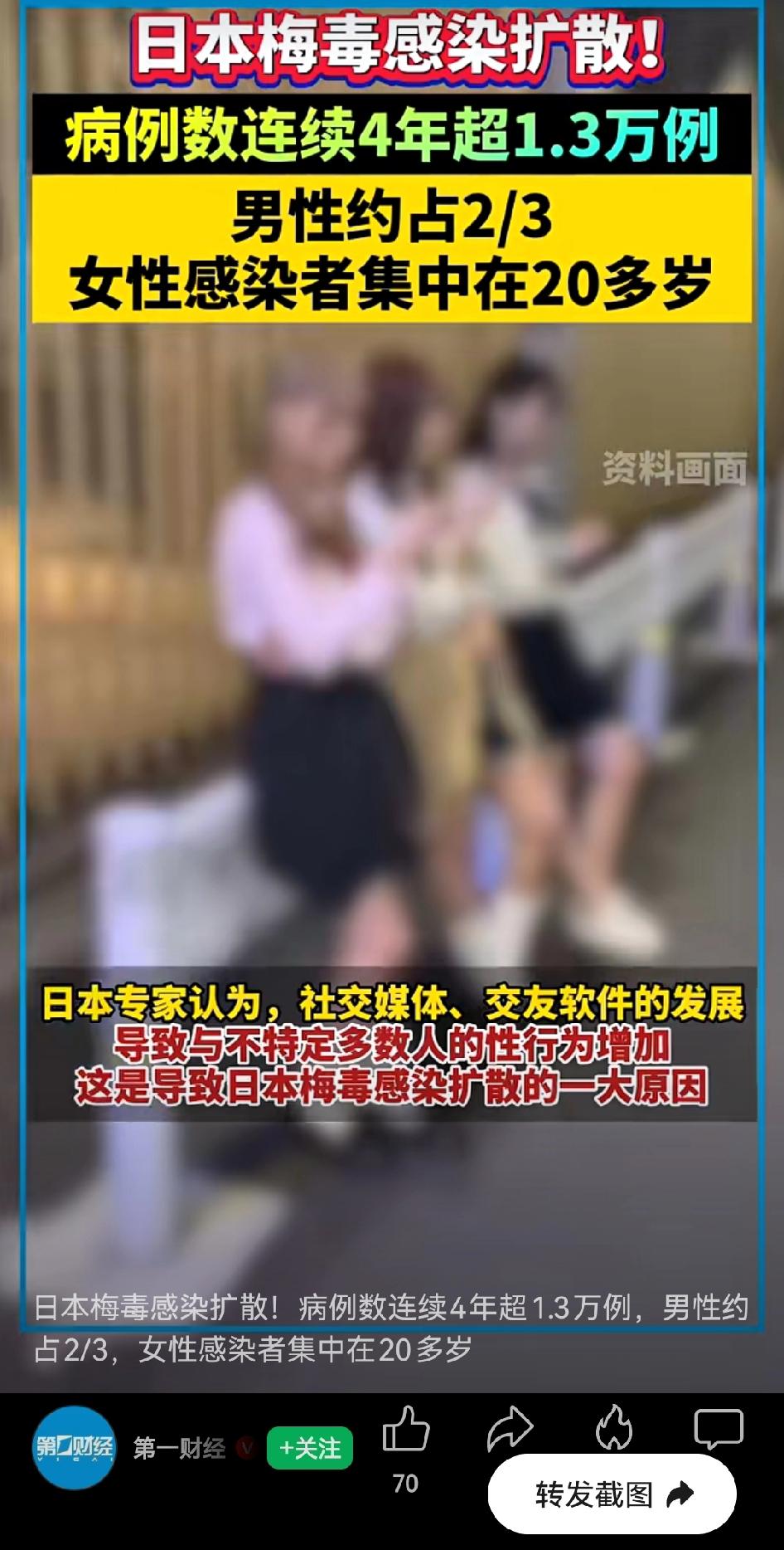 近日日本病毒大爆发启示:我们正在走日本的老路,x解放和x自由的观念在各种社交媒体软件的加持下,变得超乎寻常的觉醒。特别是活在当下以及及时行乐观念的宣扬下,甚至把找弟弟、找大叔作为一种新鲜的体验和尝试,中年女性在责任和各种因素影响下,大都会害怕得病。而年轻女性,脑海里大都无所谓。日本统计:梅毒大都在中年男性和在年轻女性中流行,就能看出一问题的核心。特别是现在x观念的解放,甚至都敢于尝试多人这样得病风险大增的行为。是说他们为爱勇敢?还是说他们无知者无畏?如今看来社交媒体和软件的大力发展,起到负面作用更大,特别是年轻一代从小就深受各种擦边的影响,道德羞耻于他们而言并不很重要。禁止16岁以下使用社交媒体和软件,扼制这些软件的发展迫在眉睫。