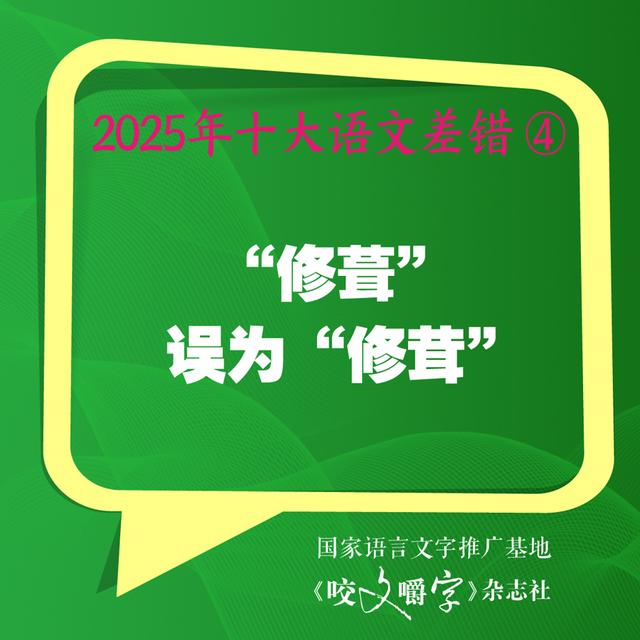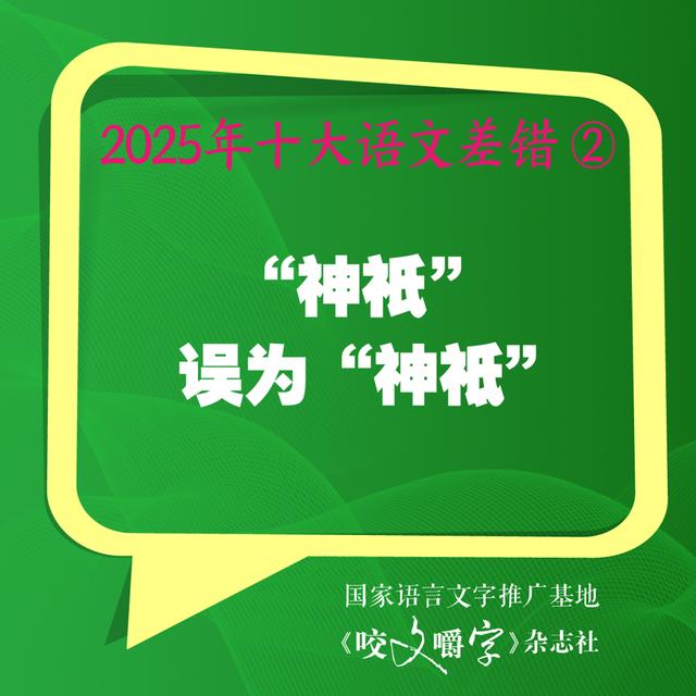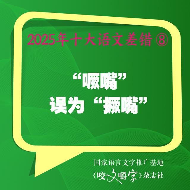 针对今年的差错,《咬文嚼字》主编黄安靖分析,第一,重视典型差错。典型差错,即语文生活中出现频率高、覆盖面广的差错,如“果脯”的“脯”误读成pú、“神祇”的“祇”误为“祗”、“巨擘”误为“巨擎”、“起用”误为“启用”等等,就属于此类,都进入了“2025年十大语文差错”榜单。典型差错集中于语文成分中的常用部分、易错部分,受过中等教育甚至初等教育的人都会经常用到,并且稍不留意就会出错。典型差错是纠错价值最高的语文成分。