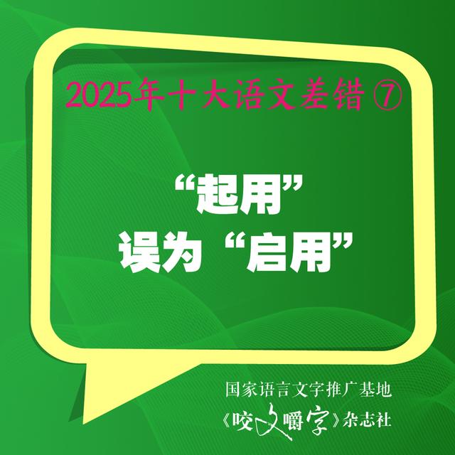 七、“起用”误为“启用”。高市早苗当选日本首相后,有媒体报道其“启用涉及丑闻的议员”。“启用议员”有误,应为“起用议员”。启,本指打开,引申指开始。因此,“启用”指开始使用,其搭配对象是物,常用于设施、设备,如“启用新机场”“启用新机器”等。起,本指坐起来、站起来,引申指向上升。因此,“起用”指提拔或重新任用,其搭配对象是人,如“起用新人”“起用干部”等。按照现代汉语用词规范,既然“议员”是人,与之搭配的动词就应是“起用”,而非“启用”。