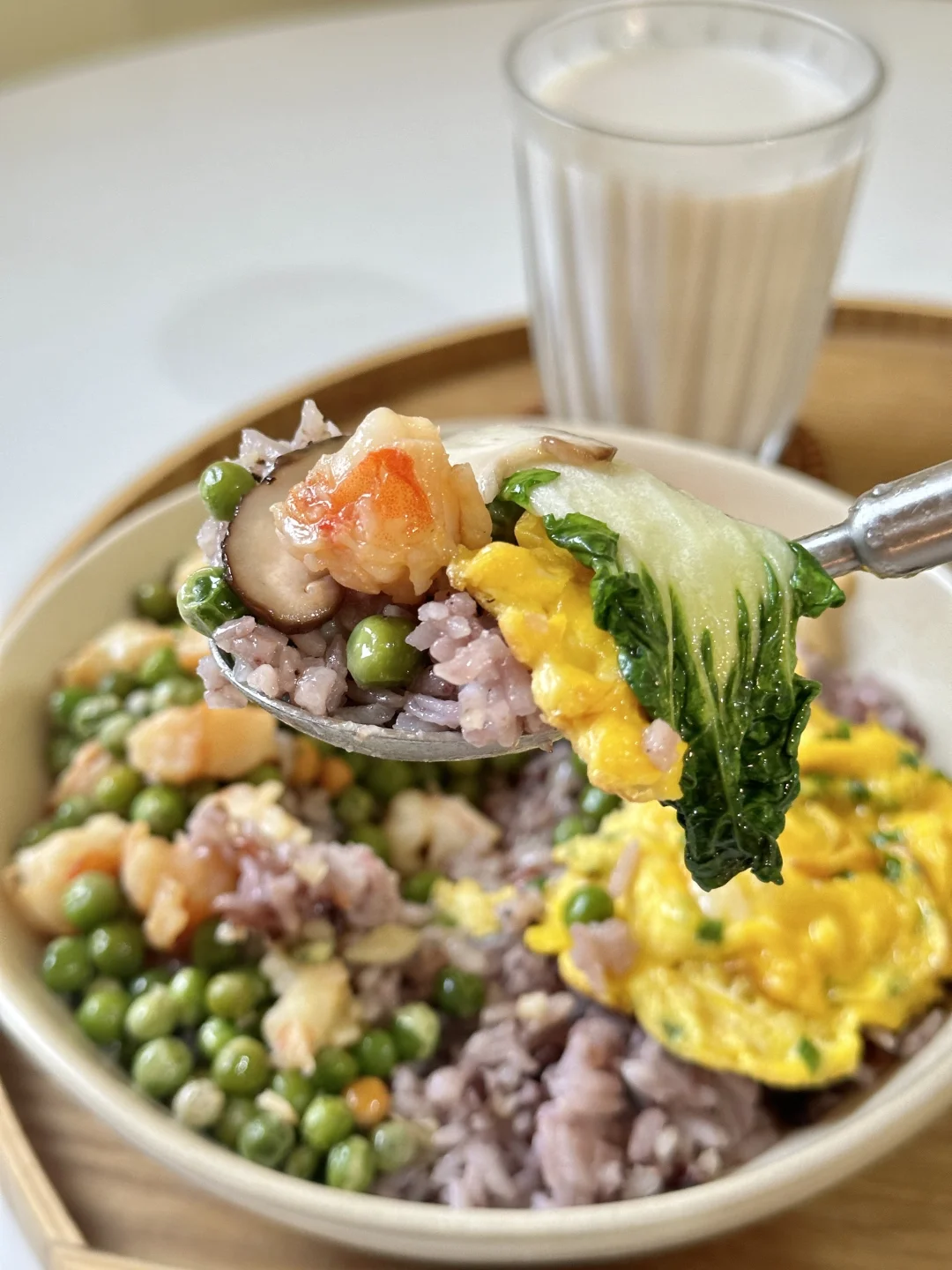 最近回归到“清心寡欲”的生活状态 拒绝一切外食 甜品饮料 吃健康天然家常的食材 只用简单的烹饪和调味 一日两餐 注重每餐的营养密度 吃饭时细嚼慢咽 去感受食物的美味 去慢慢增加自己的饱腹感和满足感 建立稳定的食欲和血糖水平 今日份健康一人食: ▪️微波炉豌豆虾仁盖饭 ▪️微波炉香菇奶白菜 ▪️腊肉萝卜汤 ▪️银耳花生豆浆