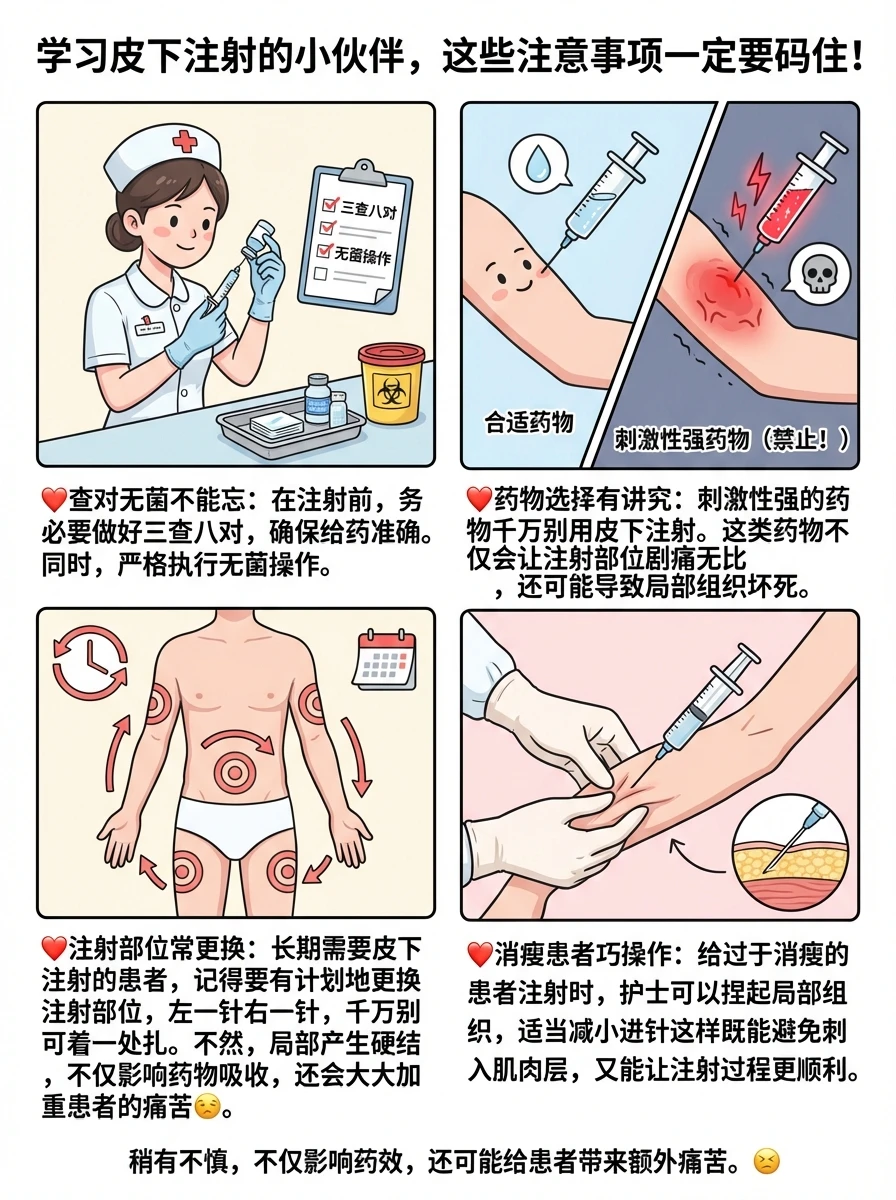 这些皮下注射注意事项,大家一定要牢记!建议点赞收藏,关键时刻不慌张! 阿虎医考 护士那些事 儿