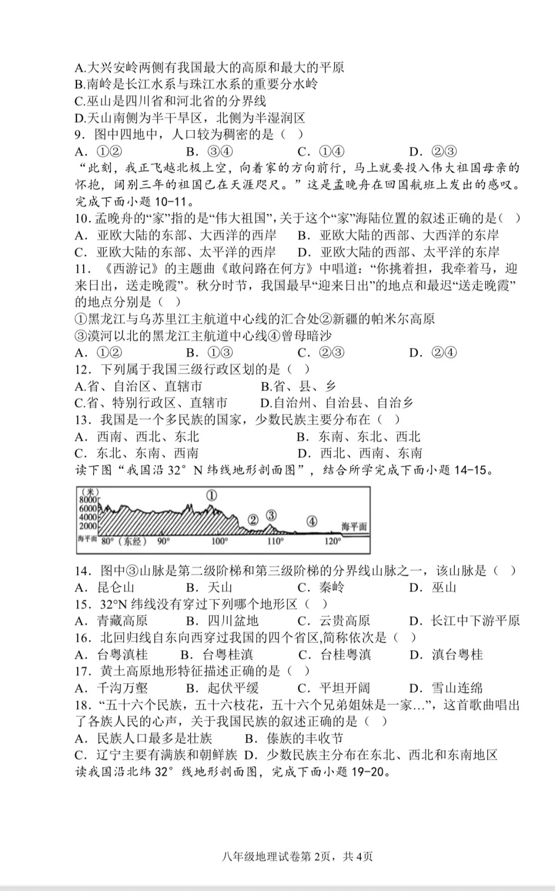 来个地理老师帮我看看这份月考试卷难度如何