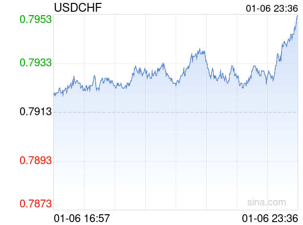 新浪外汇消息2026年01月06日,截至23时36分,外汇市场上美元兑瑞士法郎汇率突破1美元兑换0.7953瑞士法郎。涨幅为0.5055%