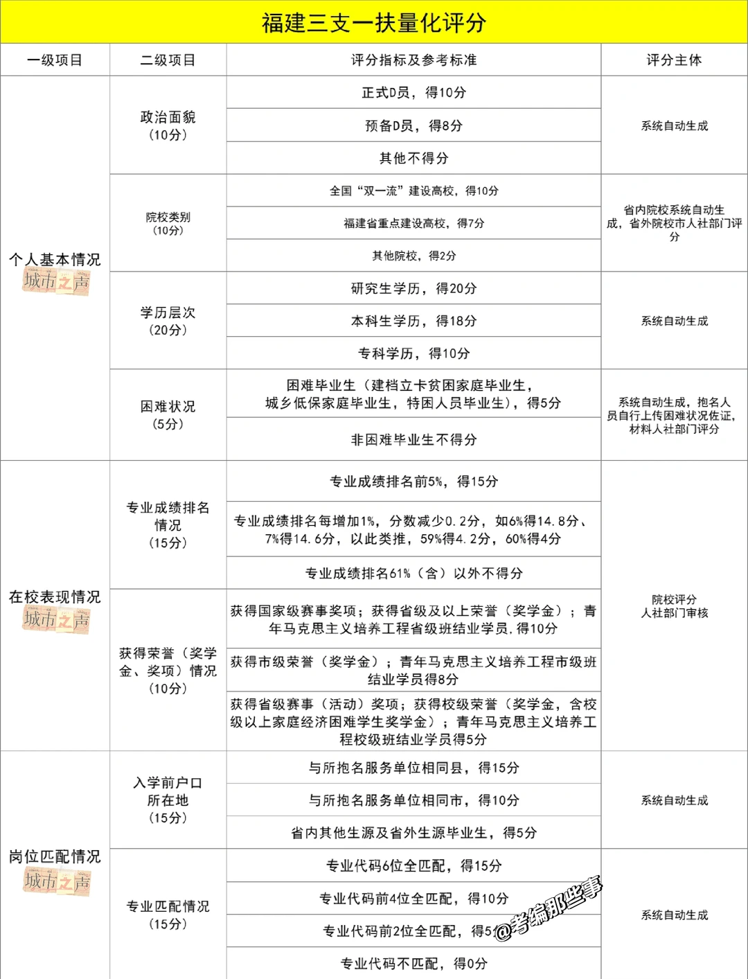 福建三支一扶量化评分表,24公告出了