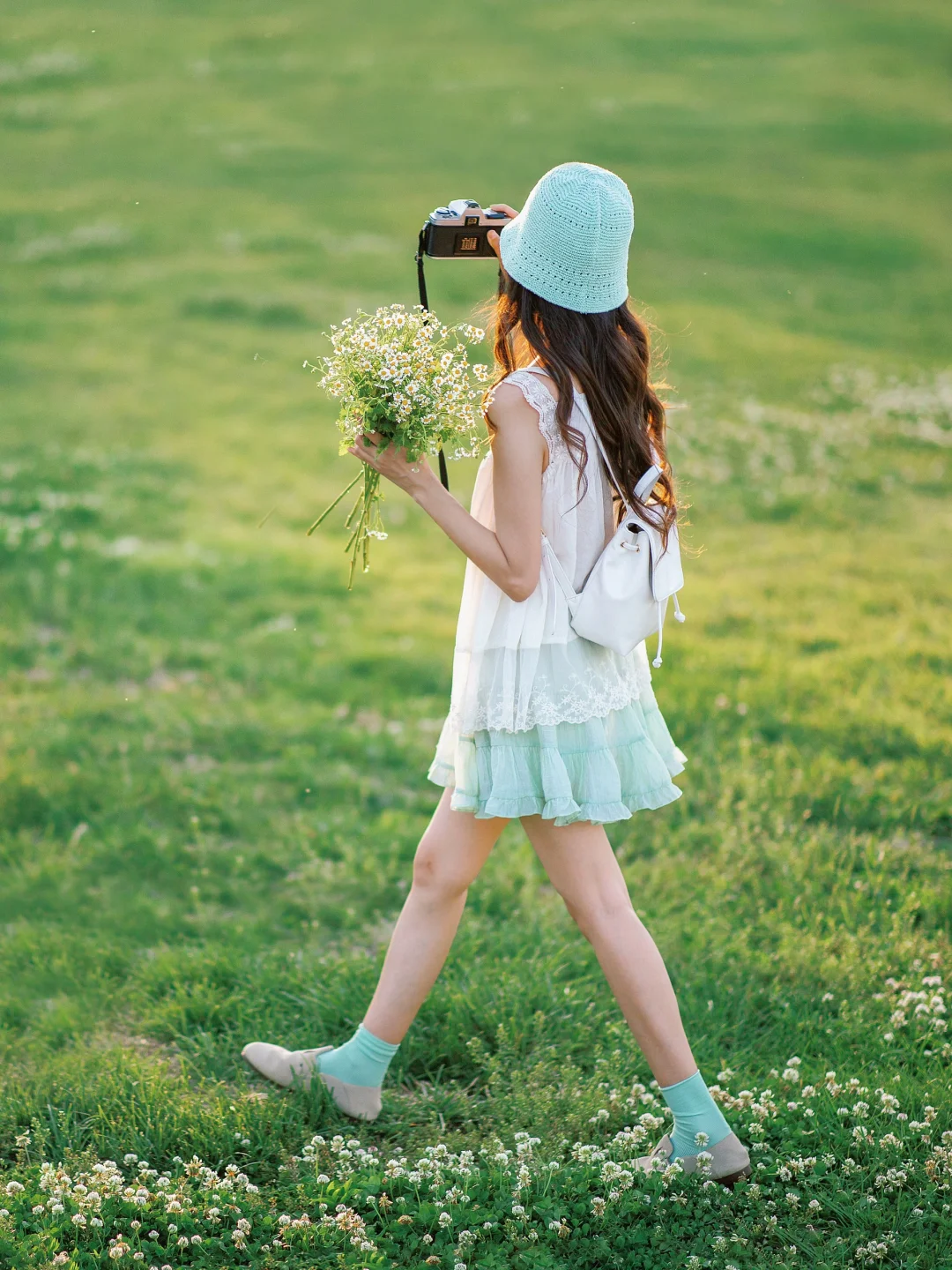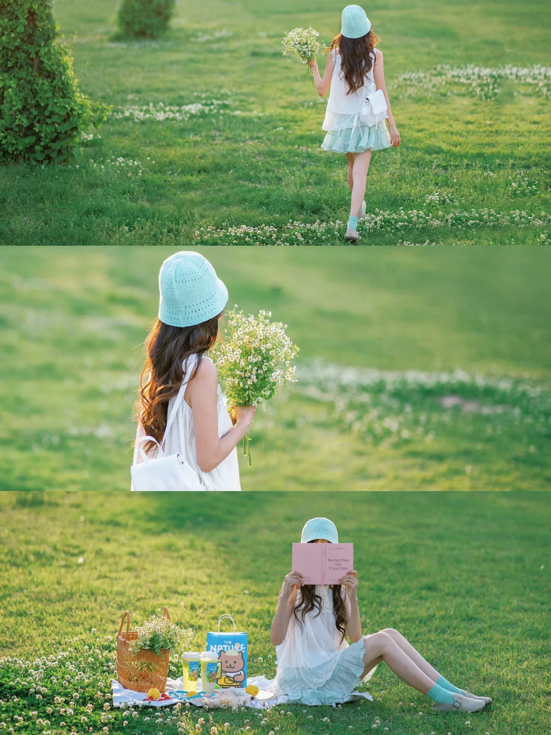 夏季公园里随处可见的草坪,试试这样拍出逆光氛围感,拍照时间要选择在晴天的下午6点左右,也就是太阳下山前的一个小时,这个时候柔和的阳光洒在草地上,形成了黄绿色错落的光影,逆光或者侧逆光拍摄,草坪的做为背景就会非常有层次~