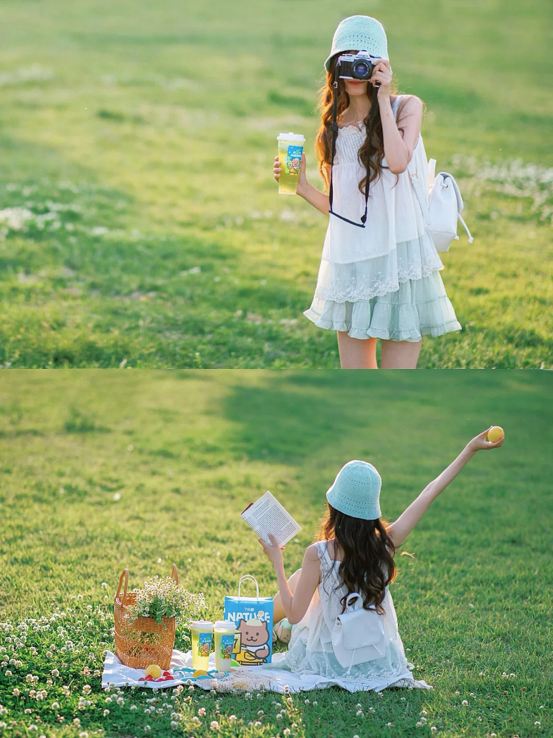 📷拍照不知道摆什么姿势的话,可以试试让手里有东西可拿,这样动作就会自然很多啦,我今天带了两杯7分甜×一猫人联名的新品,一猫人也太可爱啦~