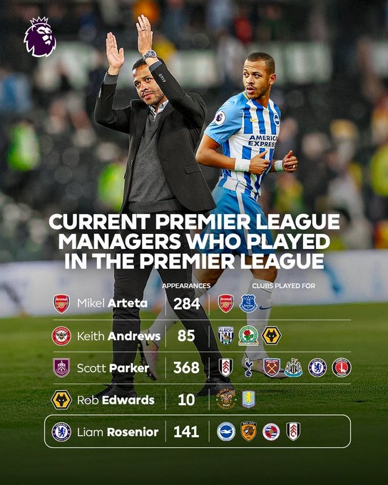 直播吧1月7日讯切尔西任命罗塞尼尔为球队新帅后,英超教练席新增一位曾在这个联赛有过效力经历的主帅。根据英超官方的统计,除了罗塞尼尔外,阿尔特塔、基斯·安德鲁斯、斯科特·帕克以及罗柏·爱德华兹球员时代都曾在英超征战。