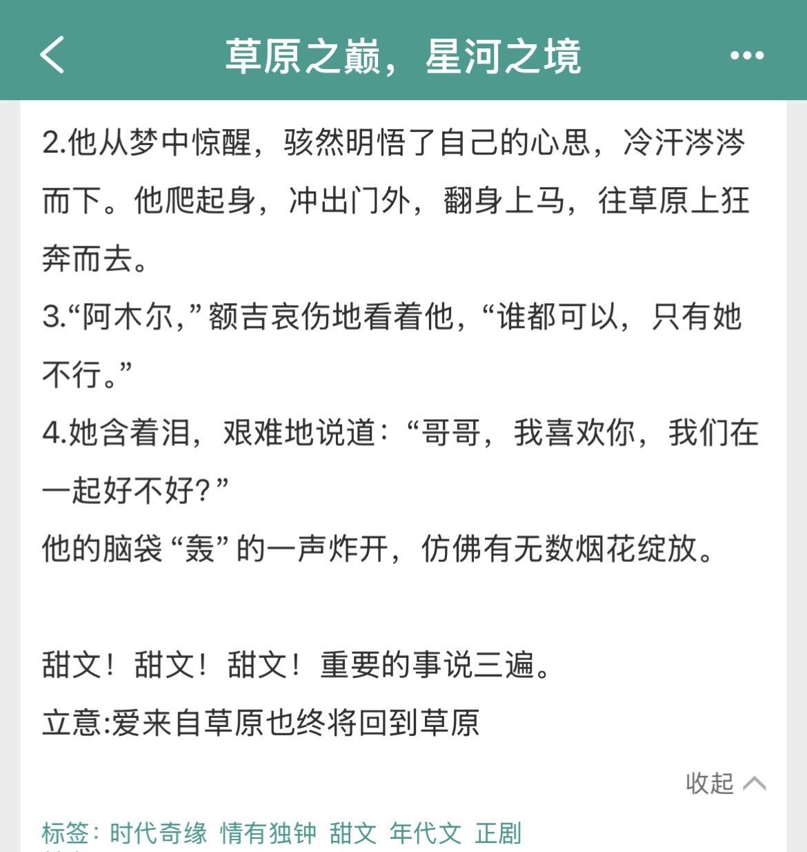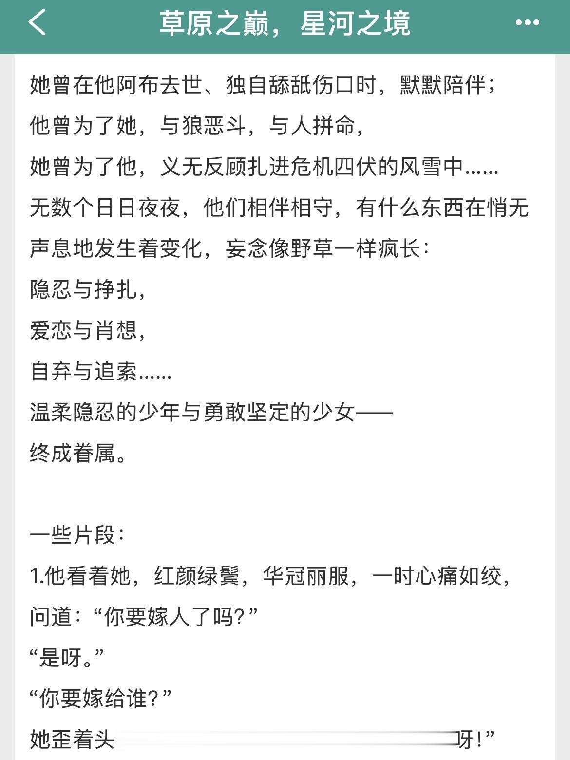 温馨治愈!年代+草原+甜文!温馨治愈!年代+草原+甜文! ※温柔隐忍少年vs勇敢坚定少女! ※温柔细腻青梅竹马哥妹文! 书名:《草原之巅,星河之境》 作者:云迩 标签:年代文、甜文、完结文