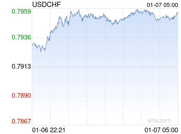 新浪外汇消息2026年01月07日,截至05时00分,外汇市场上美元兑瑞士法郎汇率突破1美元兑换0.7955瑞士法郎。涨幅为0.5308%