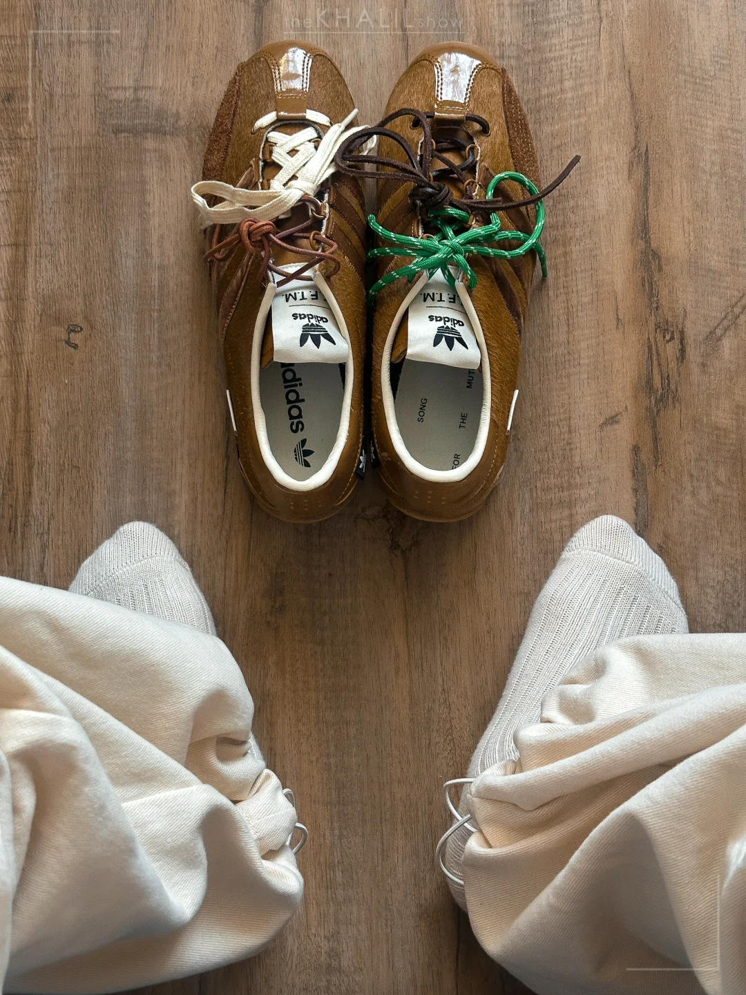 一定也有相同想法的小伙伴吧😏 我已经换好了,大家来看看效果怎么样? 之前就觉得这次adidas sftm 003(还是004、傻傻分不清楚)马毛材质这么棒,替换鞋带的可玩性也非常高。🎊 尤其是这个黄色、要换成彩色鞋带,岂不是miumiu风拉满。 加上本身的鞋面材质,看着是真有质感👍 你们觉得呢[黄金薯R]