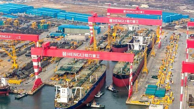 硬实力!4艘巨轮同日出坞,中国造船又创世界纪录!美国这次彻底坐不住了! 1月4日,辽宁大连恒力重工1号船坞上演震撼一幕:4艘30.6万吨级超大型油轮同一天出坞下水,创造了全球造船行业新纪录。这是世界造船史上首次实现4艘VLCC同坞建造、同日出坞,规模空前。 741米长的船坞内,4艘巨轮一字排开,每艘都比福建舰还要大。从开闸放水到坞门开启,整个过程一气呵成,4艘船依次平稳出坞,场面壮观。这些巨轮接下来将进入舾装作业阶段,为高质量试航和交付做最后冲刺。 这次突破意义非凡。要知道,一坞造四船可不是简单堆砌,而是对建造节奏、资源调配、质量控制的极限考验。四艘船四个工程同时具备出坞条件,这种复杂性和难度在行业里极其罕见。恒力重工采用行业先进的带缆小车作业法,取代传统人工调缆,安全性和效率大幅提升。 更让美国焦虑的是,中国造船业早已不是当年的"小作坊"。2025年,中国在造船完工量、新接订单量、手持订单量三大核心指标上继续全球领跑,市场份额连续16年位居世界第一。全球近70%的绿色船舶订单被中国拿下,甲醇燃料船、LNG双燃料船等高端船型成为订单主力。 相比之下,美国造船业却在"去工业化"的苦果中挣扎。想要重建一个已经转移并断裂了数十年的庞大产业链,投入几百亿美元也只是杯水车薪。技术工人、配套供应链、长期市场订单的全面回归,对美国来说几乎是不可能完成的工作。 当中国造船业用实力碾压全球,美国还能靠什么来维持海上霸权?评论区说说你的看法!
