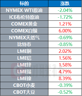 COMEX黄金期货涨1.21%,报4505.5美元/盎司。COMEX白银期货涨6%,报81.26美元/盎司。