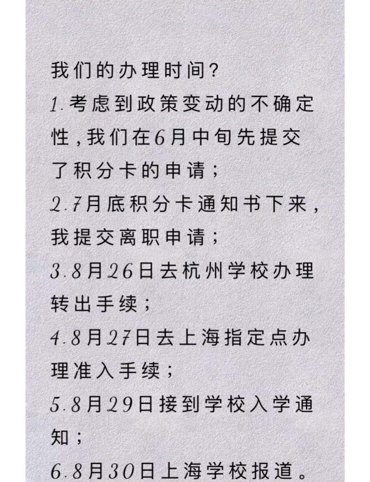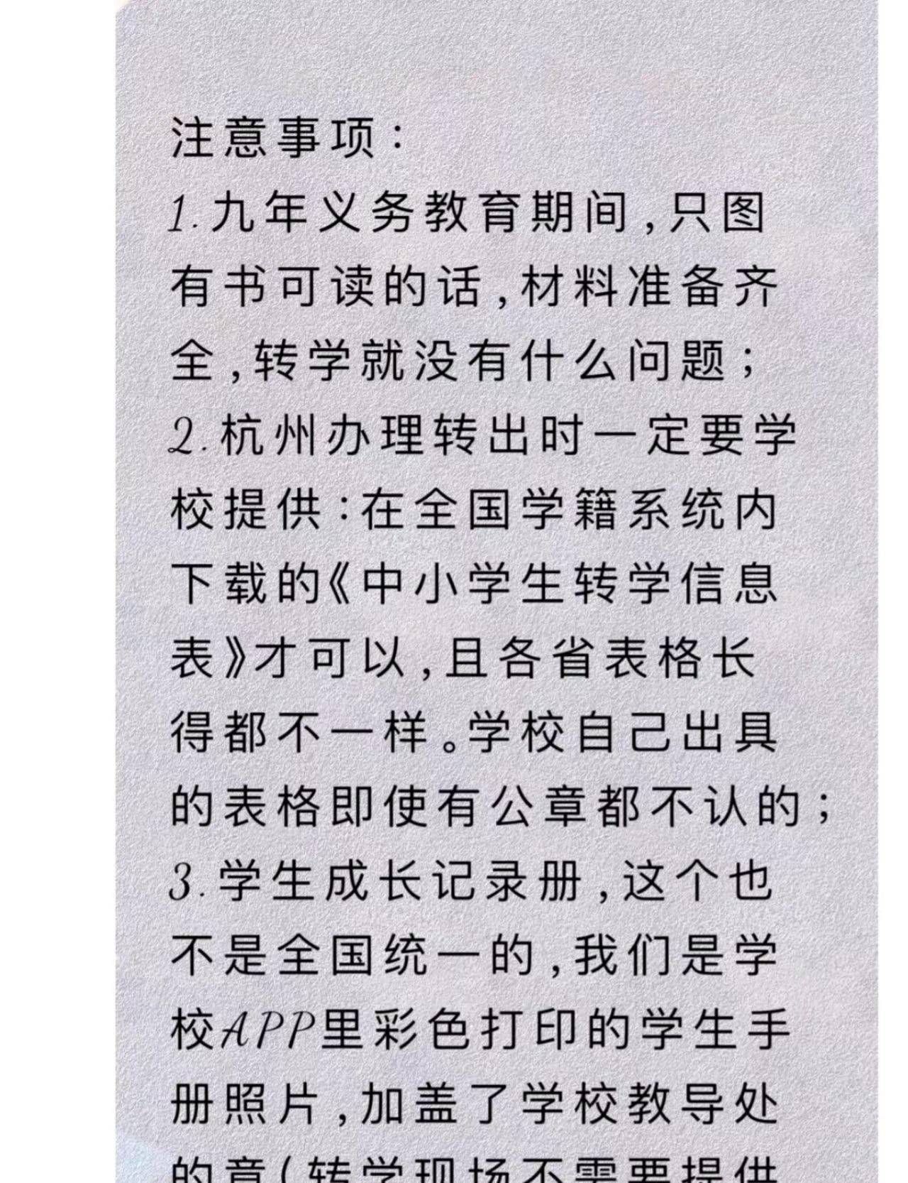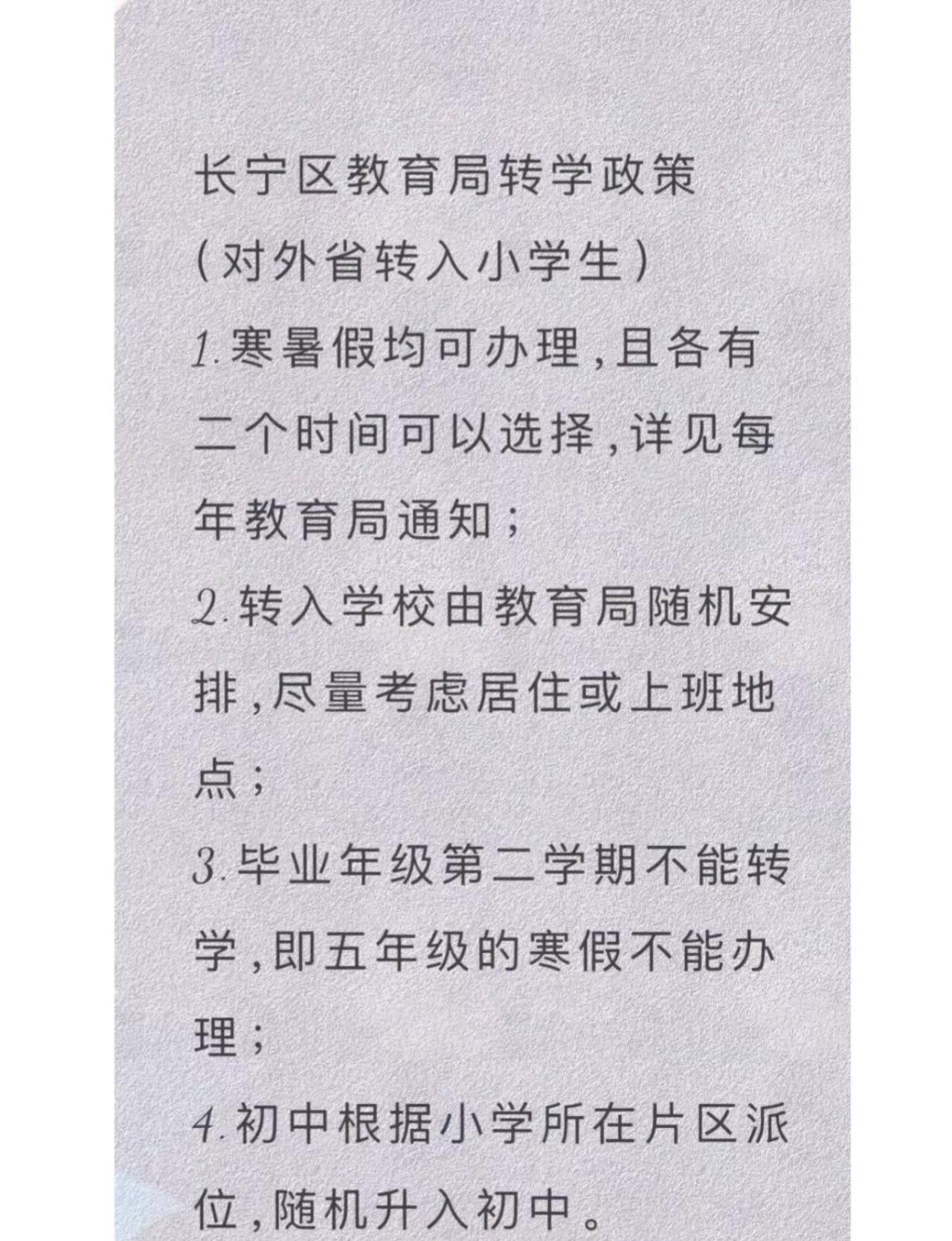 小学四年级从杭州转学上海长宁区(实践篇)概况一下所需材料( 来沪人员随迁子女 ):(1)学生父母一方持有效的《上海市居住证》且积分达标准分值的相关证明(该证明上学生为同住人)的原件及复印件;(2)学生的户口簿、出生证明、有效的《上海市居住证》或《居住登记凭证》(详见 2018 年1月1日实施的《上海市居住证管理办法》)原件及复印件;(3)全国学籍系统内打印的《中小学生转学信息表》,加盖学校公章;(4)长宁区居住地证明原件及复印件:产权证或房屋租赁合同登记备案证明;(5)学生成长记录册(或学生手册)原件。具体怎么操作的详见图片最后的最后实在想吐槽一下这个: 全国学籍系统内打印的《中小学生转学信息表》所谓“全国学籍系统”不是一个名字,其实是各个省的学生信息系统,且各省导出表格也不是统一模板,甚至不是都叫 《中小学生转学信息表》 这个名字。办理转学的老师一口一个你们学校教导处老师肯定知道的,她肯定有账号,没有你就办不了转学了!可我们教导处老师她真的不知道。最终看我实在急了,好心给了我一个江苏的办成功的孩子的表格。我发图片给转出学校的教导处老师,她说没听过这个系统也没见过这个表 ,我甚至打了区教育局,也告诉我不知道是什么 [哭惹R][哭惹R]幸好我急中生智,手机里试着输了一下江苏那个表格最下面那张的网址,发现是“江苏省基础教育信息管理系统”,我截图这个问教导处之后,她才帮我打印了我最终得到的那个《学生基本信息表》。好在杭州和上海比较近,我上午一早就去办了,缺的这唯一一张表格,下午家里人帮我原件高铁带了过来。[派对R][派对R][派对R]感恩所有人,最终有惊无险是办成功了!外地转学上海新学期新开始 转学 上海小学转学