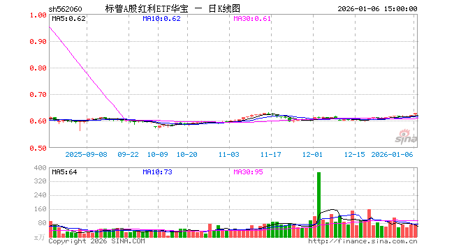 1月6日,标普A股红利ETF华宝(562060)涨1.29%,成交额4391.35万元。当日份额增加700.00万份,最新份额为40.27亿份,近20个交易日份额增加1.69亿份。最新资产净值计算值为25.34亿元。