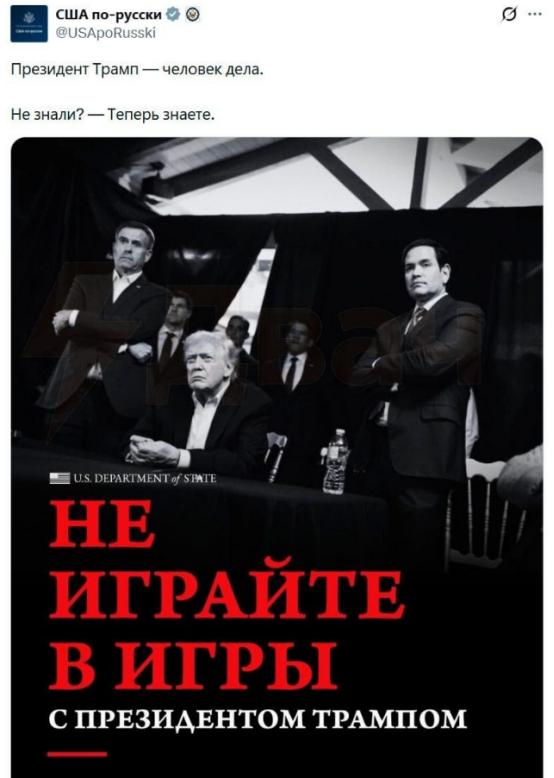 “别和特朗普玩火”:美国国务院向俄罗斯与伊朗发出威胁 美国国务院的外文社交媒体账号,用俄语和波斯语发布了同一条内容: “特朗普总统是个实干家。以前不知道?现在该知道了。” 这条帖子配了一张黑白照片,画面中特朗普与马尔科·鲁比奥坐在桌前,双臂交叉,文字则用醒目的红色字体突出,极具威慑意味。 能想出这种传播方式,美方显然是摸透了俄伊两国的信息接收习惯。他们知道在社交媒体上用本土语言发声,比发官方声明更能直接触达目标受众,也更能制造舆论冲击力。 尤其是那张黑白照片,选得相当有讲究。特朗普和鲁比奥双臂交叉的姿态,本身就带着拒人千里的强硬感,黑白滤镜又添了几分严肃和压迫感,再配上扎眼的红色文字,不用喊口号,威慑意味就已经拉满了。 这背后绝不是某个部门的临时起意,而是特朗普政府外交策略的集中体现。核心就是靠“实干家”这个标签,重塑俄伊对美国的认知,打破之前可能存在的“特朗普只是嘴炮”的判断。 要搞懂这波威胁的分量,得先明白特朗普这个“实干家”的头衔到底意味着什么。这不是美方凭空吹捧,而是有实打实的过往行为做支撑。之前特朗普就曾公开威胁伊朗,说如果不就核问题达成协议,就要对伊朗实施轰炸,还会征收二级关税。 他甚至真的给伊朗最高领袖写过信施压,虽然伊朗坚持间接谈判不妥协,但也不得不正视这份威胁的严重性。对俄罗斯也是一样,特朗普因为俄乌冲突谈判进展不顺,曾直言对普京感到“生气和愤怒”。 他还放话要对所有俄罗斯石油征收25%到50%的二级关税,甚至威胁让购买俄石油的国家没法和美国做生意。这些都不是空口白话,是他执政期间实实在在抛出过的施压手段。美方现在重提“实干家”,就是想让俄伊回忆起这些过往,从而产生忌惮。 更关键的是,照片里和特朗普同框的鲁比奥,可不是个无关紧要的角色。他的出现,让这波威胁的含金量又上了一个台阶。鲁比奥是出了名的外交鹰派,作为古巴移民后裔,他早年就靠激进的反古巴议题积攒政治资本。 后来更是成为共和党内强硬派的代表,对俄罗斯、伊朗等国向来是斥责发难从不手软。之前他和特朗普还有过政见分歧,甚至公开批评过特朗普,但后来慢慢成为特朗普团队的中坚力量,还担任过特朗普的非正式外交顾问。 2025年他更是出任国务卿,成了“特式外交”的重要传声筒。他和特朗普同框的照片,本质上是在传递一个信号,那就是总统的强硬态度有内阁核心力量支撑。这是在告诉俄伊,这不是特朗普一个人的一时兴起,而是整个美国政府的共识,后续很可能还会有配套的政策跟进。 美方选在这个时候发出这种威胁,显然是针对性十足。对俄罗斯来说,当前俄乌冲突的谈判陷入了僵局。普京提出在联合国监督下对乌克兰进行民主选举的提议,没达到特朗普政府的预期,特朗普想尽快掌控局势却迟迟没能如愿。 这时候抛出“实干家”的威慑,就是想逼迫俄罗斯在谈判桌上让步,加快推进符合美国利益的战后安排。对伊朗而言,美伊的第三轮间接谈判刚结束,虽然双方都表示愿意继续对话,但在铀浓缩水平、解除制裁机制等关键议题上分歧很大。 伊朗甚至明确表示不会接受停止铀浓缩活动的要求,特朗普政府急着推动伊核问题取得进展,尤其是要给以色列一个交代,所以才会用这种强硬姿态施压,试图让伊朗在谈判中妥协。 这波威胁也暴露了特朗普政府外交的典型套路,他们就是把“极限施压”当成万能钥匙。先靠狠话和过往的强硬案例制造威慑,再试图在谈判中掌握主动权。 之前对付其他国家,特朗普就惯用“关税大棒+军事威胁”的组合拳,现在对俄伊不过是故技重施。之所以这么做,本质上是因为美国在当前的地缘政治博弈中,拿不出更有效的筹码,只能靠这种霸凌式的手段逼迫对方就范。 但美方显然也清楚,俄伊都不是轻易能被拿捏的“软柿子”。伊朗之前就明确表示不会屈服于极限施压和军事威胁,还强硬回应说导弹随时可以发射。俄罗斯在俄乌冲突中也展现了强硬的立场,不会轻易因为美国的威胁就改变策略。 接下来的局势不难预判,美国不会仅仅停留在社交媒体的威胁上。他们很可能会跟进具体的施压动作,比如对俄伊的相关实体和个人实施新的制裁,或者加大对乌克兰的军事援助、强化在中东地区的军事部署。 而俄伊也必然会做出反制,伊朗可能会进一步提升核活动的强度,俄罗斯则可能在俄乌战场上采取更主动的军事行动。同时两国还会加强与其他国家的合作,打破美国的孤立企图。 这波威胁不是结束,而是美俄伊三方博弈升级的信号。特朗普政府想靠“实干家”的标签吓住俄伊,恐怕没那么容易。 毕竟俄伊两国早就看透了美国霸权施压的套路,不会因为一句威胁就“玩火自焚”。他们反而会做好充分的应对准备,接下来的地缘政治博弈只会更加激烈。