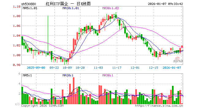 1月7日,红利ETF国企(530880)开盘涨0.10%,报1.015元。红利ETF国企(530880)重仓股方面,中远海控开盘涨0.07%,潞安环能涨2.54%,农业银行跌0.26%,南钢股份涨0.38%,渝农商行跌0.31%,大秦铁路跌0.38%,山煤国际涨0.98%,中国神华涨0.54%,工商银行跌0.26%,江苏金租跌0.48%。