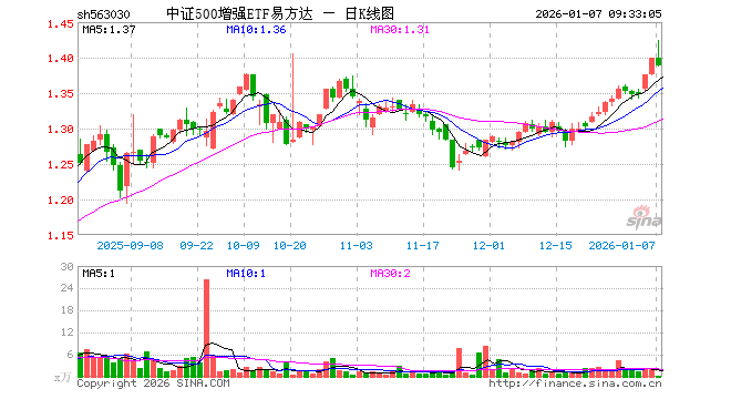 中证500增强ETF易方达(563030)业绩比较基准为中证500指数收益率,管理人为易方达基金管理有限公司,基金经理为官泽帆,成立(2023-02-17)以来回报为40.26%,近一个月回报为8.27%。