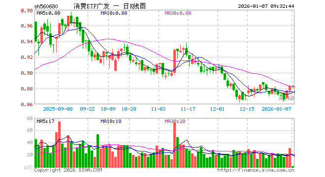 1月7日,消费ETF广发(560680)开盘涨0.00%,报0.883元。消费ETF广发(560680)重仓股方面,五粮液开盘涨0.01%,贵州茅台涨0.34%,牧原股份跌0.37%,伊利股份涨0.10%,温氏股份跌0.23%,泸州老窖涨0.03%,山西汾酒跌0.05%,海天味业跌0.08%,东鹏饮料跌0.31%,海大集团涨0.16%。