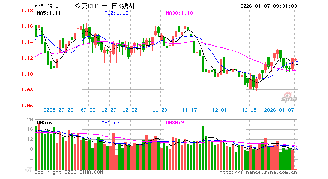 1月7日,物流ETF(516910)开盘跌0.18%,报1.117元。物流ETF(516910)重仓股方面,中远海控开盘涨0.07%,顺丰控股涨0.15%,圆通速递涨0.00%,招商轮船涨1.20%,京沪高铁涨0.00%,大秦铁路跌0.38%,蔚蓝锂芯跌0.22%,物产中大涨0.00%,建发股份涨0.00%,中远海能涨1.50%。