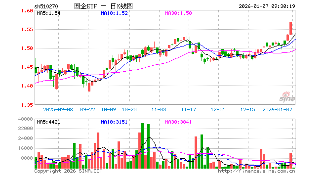 国企ETF(510270)业绩比较基准为上证国有企业100指数,管理人为中银基金管理有限公司,基金经理为赵建忠、李念,成立(2011-06-16)以来回报为83.33%,近一个月回报为5.24%。