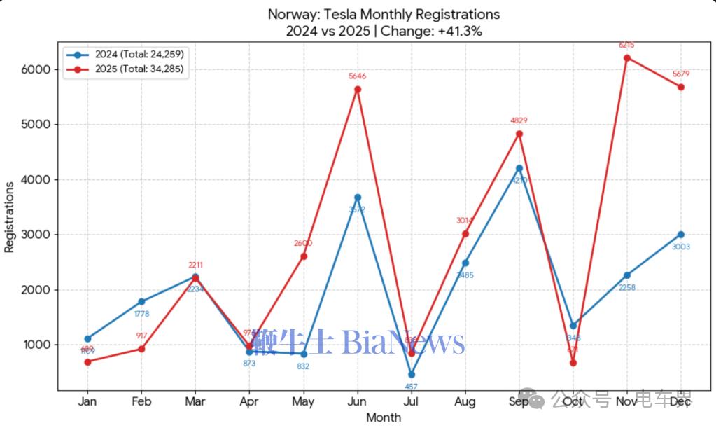 但需要明确的是,挪威市场的增长显然是暂时现象。特斯拉2025年在挪威的销量增长,绝大部分集中在最后两个月。