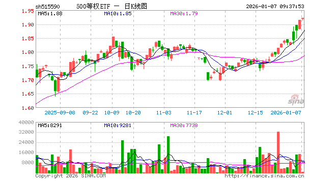 1月7日,500等权ETF(515590)开盘涨0.21%,报1.918元。500等权ETF(515590)重仓股方面,巨人网络开盘跌0.75%,先导智能涨0.02%,指南针跌2.13%,英维克跌1.79%,胜宏科技跌0.69%,东阳光涨1.52%,长川科技涨3.30%,江波龙涨11.26%,卧龙电驱跌1.12%,华工科技涨0.01%。