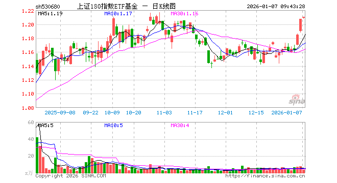 1月7日,上证180指数ETF基金(530680)开盘涨0.17%,报1.209元。上证180指数ETF基金(530680)重仓股方面,贵州茅台开盘涨0.34%,紫金矿业涨0.00%,恒瑞医药跌0.08%,药明康德涨0.03%,中芯国际涨0.00%,中国平安跌0.58%,工业富联跌1.00%,招商银行涨0.05%,长江电力涨0.00%,寒武纪跌0.95%。