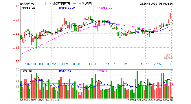 上证180ETF南方(530580)业绩比较基准为上证180指数收益率,管理人为南方基金管理股份有限公司,基金经理为杨恺宁、潘水洋,成立(2024-12-30)以来回报为22.35%,近一个月回报为5.15%。