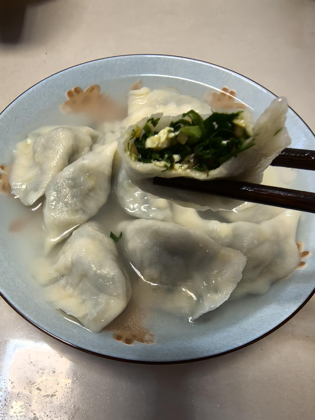 昨天下午去地里挖了荠菜,小菜园里种了茴香(网购种子,割茬茴香),搭配一缕韭菜,煎了鹅蛋,剁碎。 用烫面(稍微加点热水),包了饺子。感觉有菜,有面,有汤汤水水,有蛋白质。 一顿早餐就这样做好了。你们觉得怎么样?