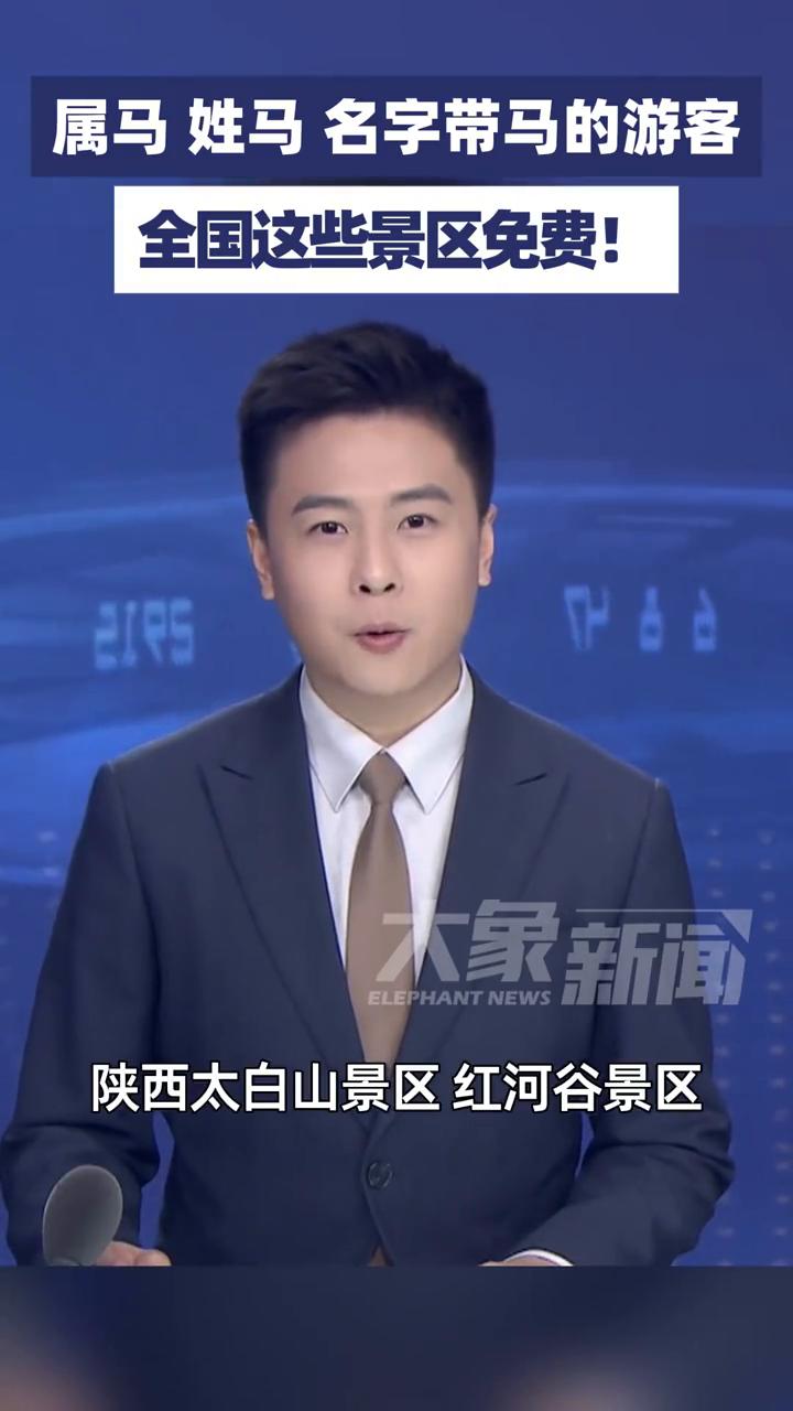 属马姓马名字带马的游客,全国这些景区免费! 大象新闻主播蒋子豪。 属马姓马名字带马,全国这些景区免费!2026新岁启幕,全国多个景区悄悄放大招,给属马姓马名字带马的游客推出了免票等优惠政策!不管是春节游玩还是全年打卡,这波福利都值得码住! ·其中,河南伏羲山凤泉湖景区,属马的游客免门票。 ·栾川天宇红豆杉景区,全国属马的姓马的游客,景区首道门票免费。 ·新疆赛里木湖景区对属马,并且生日当天到景区的游客免门票。 ·陕西太白山景区红河谷景区,对属马的游客全年免门票。 ·还有湖北、山东、甘肃、江西、沈阳等地的景区,这波福利可不容错过!
